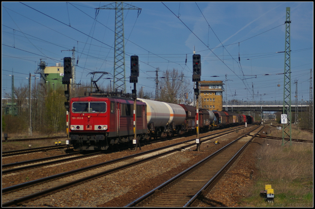 DB Schenker 155 151-4 fuhr bei Schatten von der Magdeburger Elbbrücke kommend am 08.09.2018 auf die Verbindungskurve nach Eichenweiler zu.