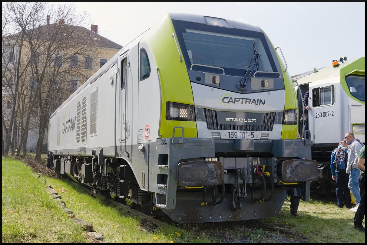 ITL W 232.09 kommt aus dem Gegenlicht mit einem Kesselzug durch den Bahnhof (ex GATX, ex Bombardier, ex EBG, ex SZD TE 109 026, gesehen Wustermark-Priort 25.03.2010)