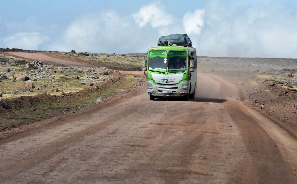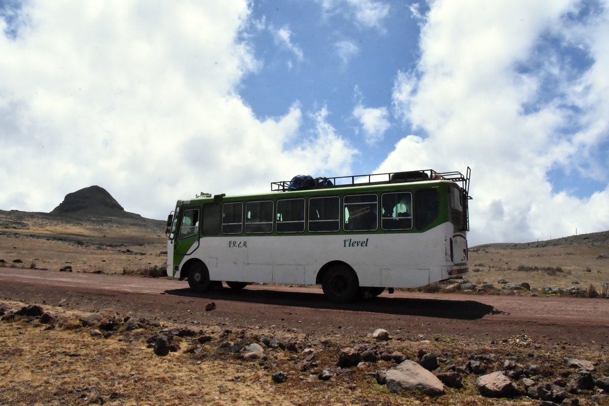 ISUZU Midibus in Äthiopien auf ca 3.900 Meter Seehöhe im Senettie Plateau 03/2019 gesehen.