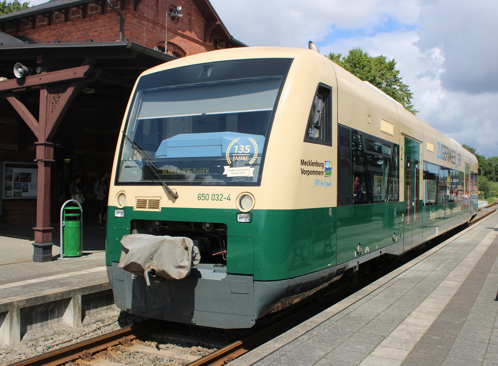 650 032-4(650 300-2)als PRE 74872 von Bergen auf Rügen nach Lauterbach Mole bei der Einfahrt am 29.07.2025 in Putbus.