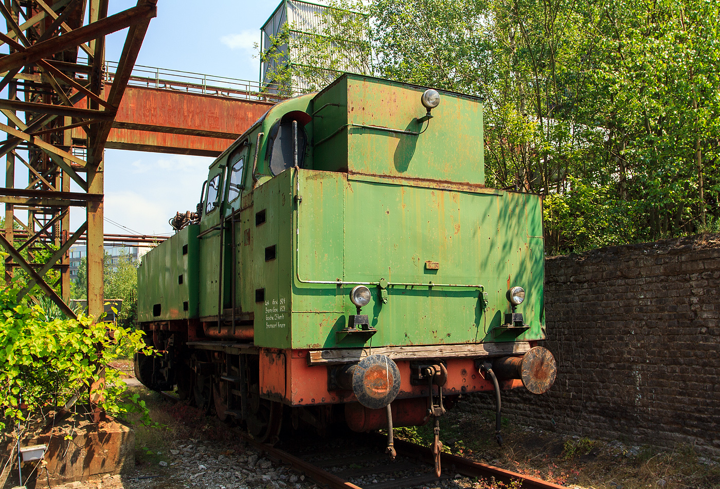 Etwas für Fotos ungünstig stehend, die Verschub-Dampflokomotive Emil Mayrisch 5, eine Krupp Bergbau, am 05 Juni 2011 im LWL-Industriemuseum Henrichshütte in Hattingen (bis 2007 WIM - Westfälisches Industriemuseum).