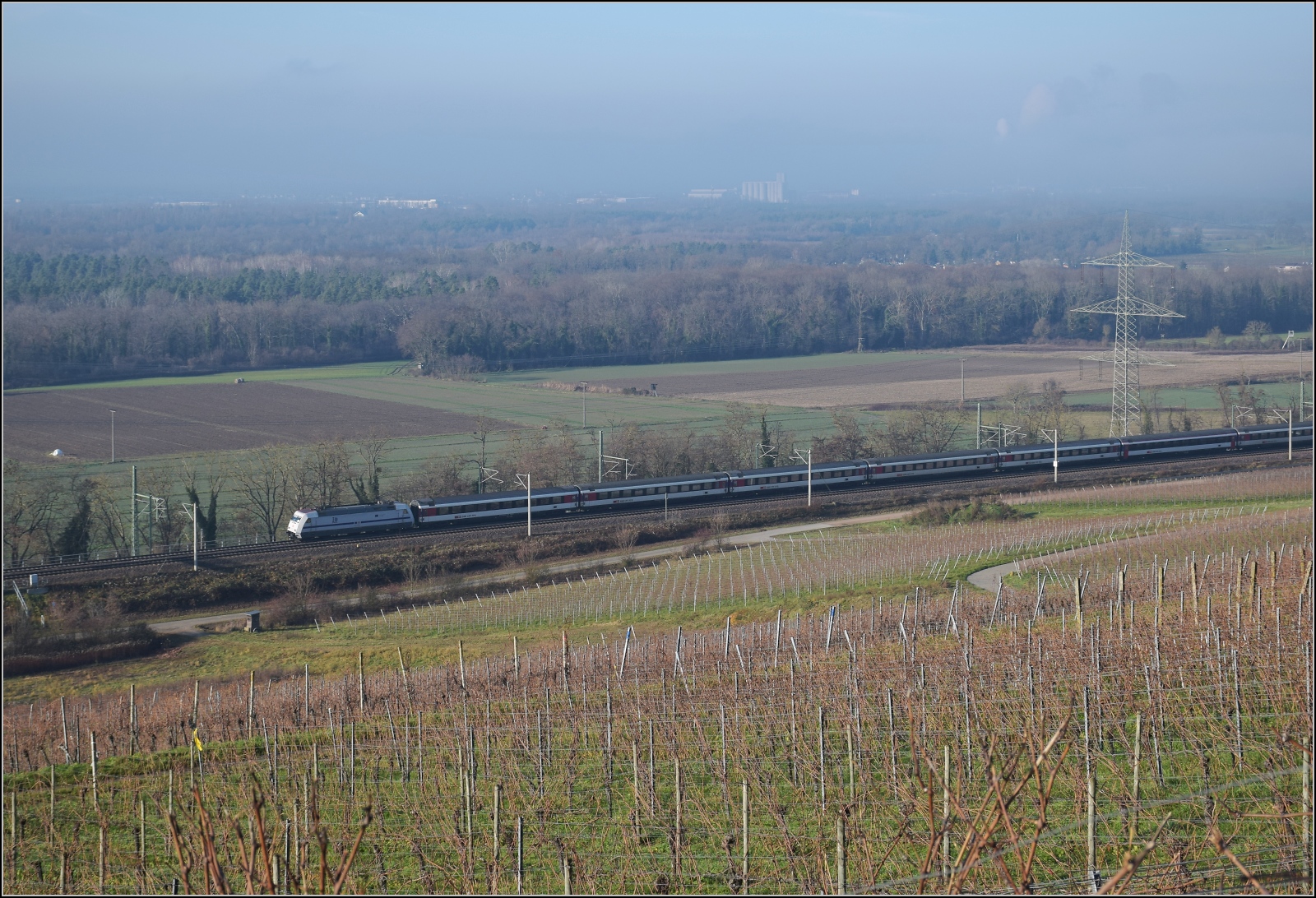 Der Nightjet ist ebenso im Hegau eine Besonderheit. Hier gezogen von 101 011.