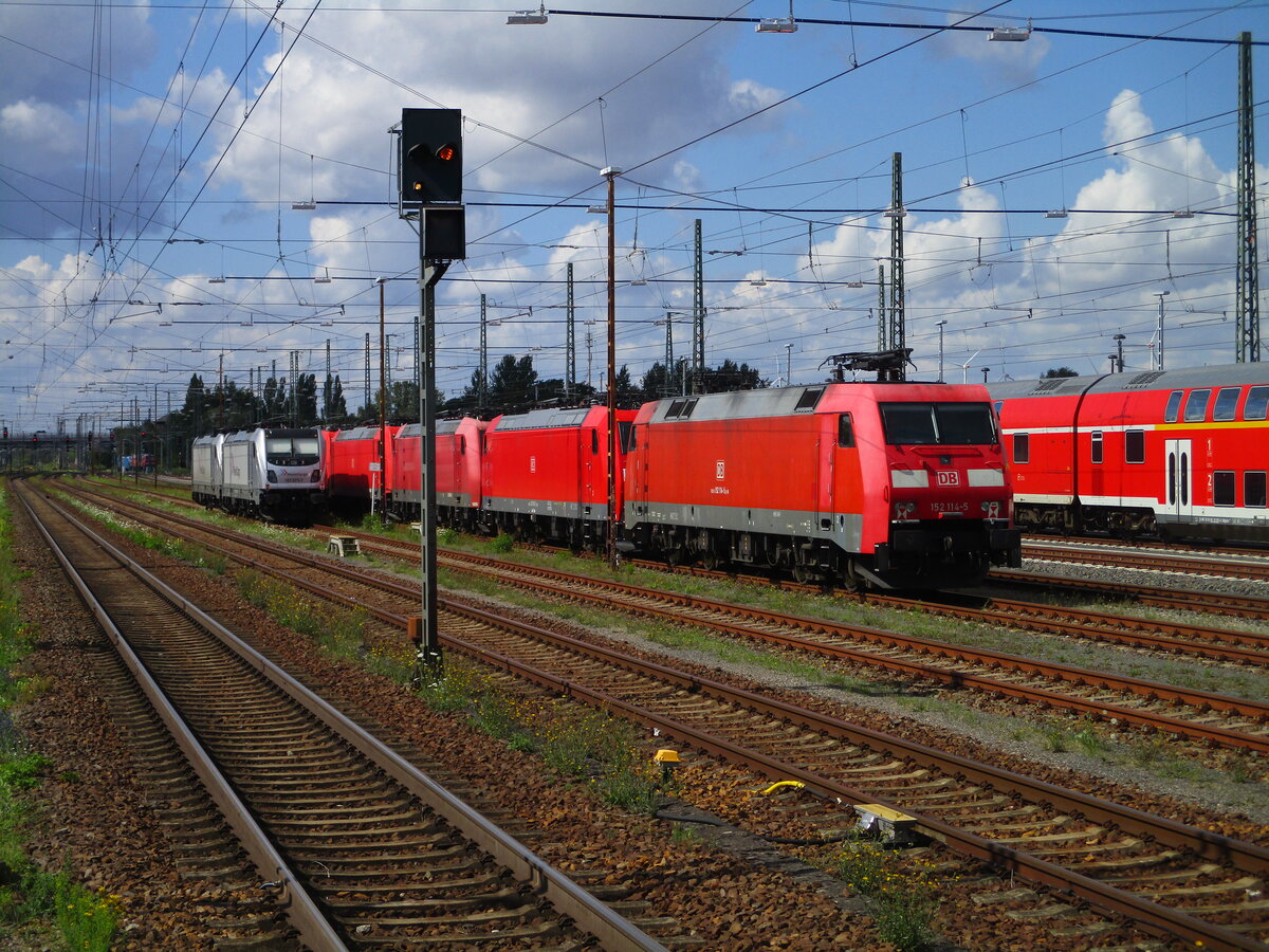 Überblick Stade Gbf. am 30.03.2015 ,Freightliner 66001, DB 152 021 & 295 043