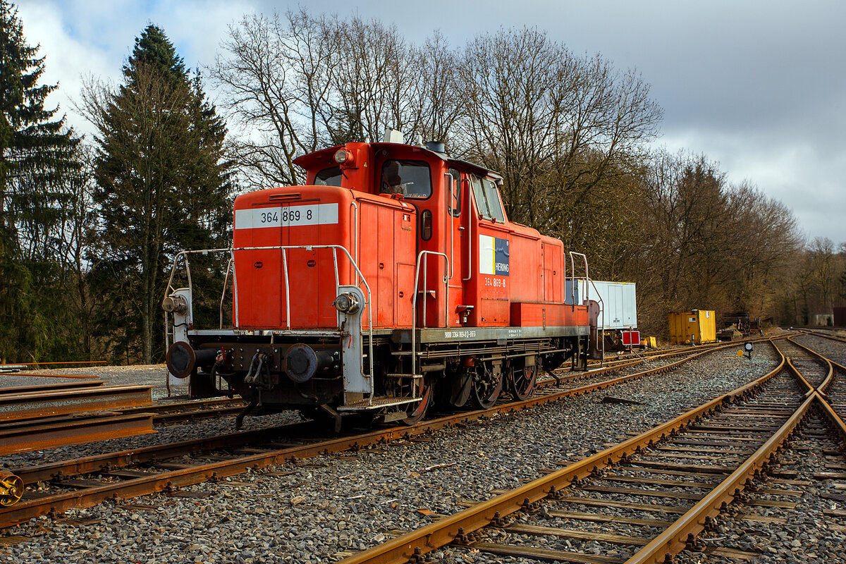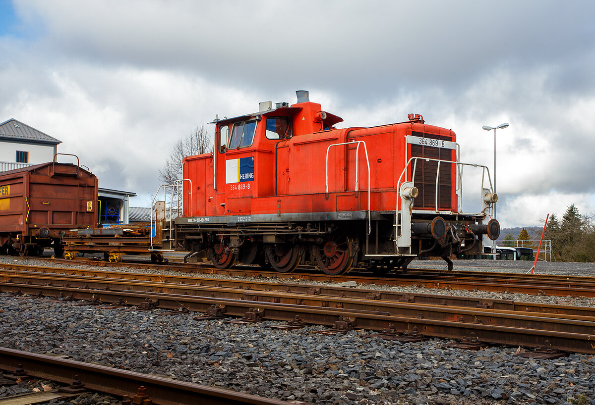 Vierachsige Flachwageneinheit mit geradem Fußboden TRANSWAGGON GmbH, der Gattung Laas, 24 80 4305 366-5 RIV D-TWA, als Schutzwagen zum KIROW Gleisbauschienenkran KRC 810 T „BALU“ der Hering Bau (Burbach), Schweres Nebenfahrzeug Nr. D-HGUI 99 80 9419 023-3, ex 97 82 53 508 19-3, abgestellt am 17.02.2019 in Siegen-Eintracht auf dem Gelände der KSW Kreisbahn Siegen-Wittgenstein GmbH.