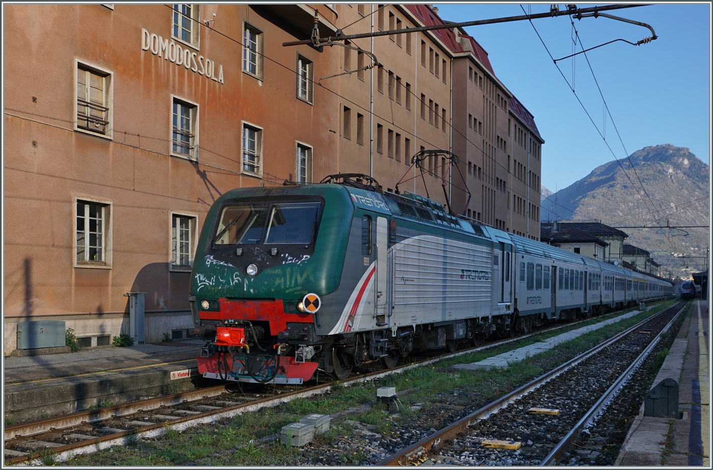 Die SBB Re 460 016-0 "Rohrdorferberg Reusstal" (91 85 4 460 016-0 CH-SBB) hat am 26 Mai 2023 mit dem IR 3017 (Brig – Domodossola) den Zielbahnhof Domodossola (I) erreicht und ist nun mit dem Zug auf Gleis 6 abgestellt. Nach gut 2 ½ Stunden (um 13:48 Uhr) geht es dann als IR3022 von Domodossola zurück nach Brig.