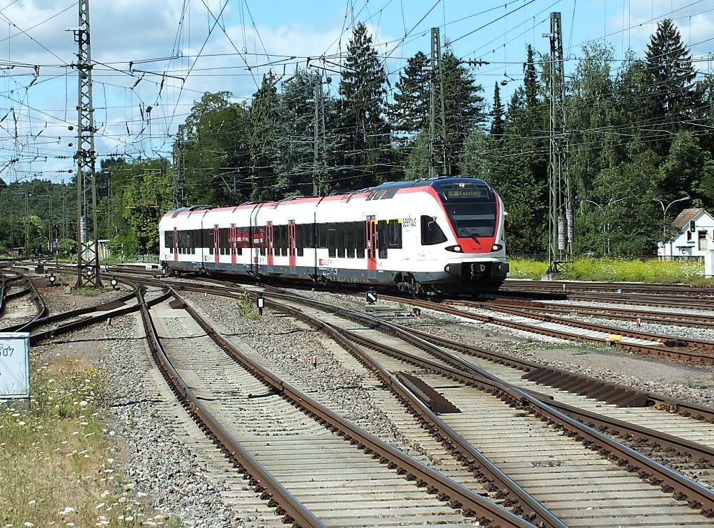 RABe 521 005 der Basler S-Bahn war am 04.08. im Badischen Bahnhof in Basel abgestellt.