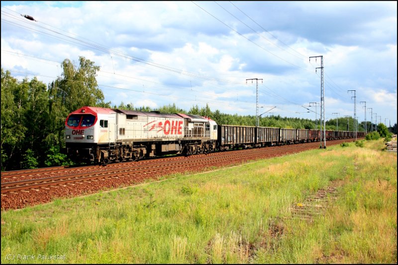 DB 232 245-1 erwischte mit ihrem Güterzug eine Sonnenlücke in der kompakten Wolkendecke (ex 132 245-2, Doppeltraktionsfähig, gesichtet Berlin Wuhlheide 20.06.2009)