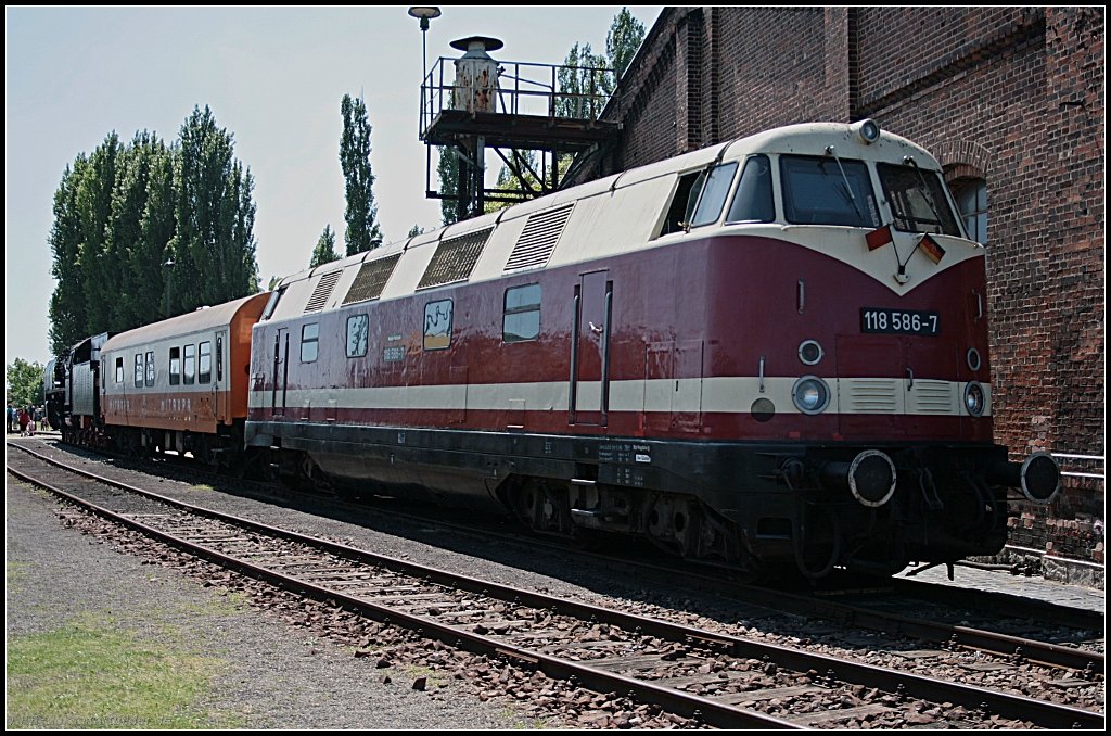 44 1182-3, 50 3695-9 und 52 8184-5 lugten aus dem Lokschuppen (Dampflokfest im Traditionsbahnbetriebswerk Staßfurt, gesehen Staßfurt-Leopoldshall 05.06.2010)