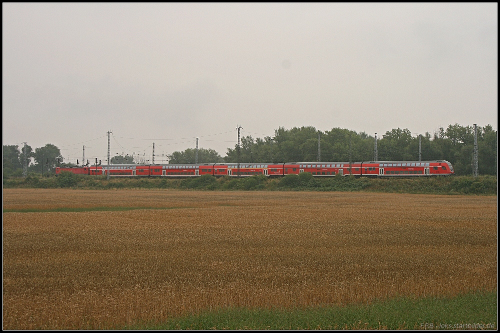 DB Regio 114 018-5 mit dem RE 38017 nach Eisenhüttenstadt auf der Flutbrücke (gesehen Biederitz 09.08.2010)