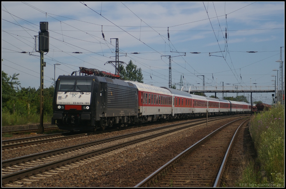 DB AutoZug ES 64 F4-101 / 189 101-9, angemietet von MRCE Dispolok, mit AZ1362 aus Narbonne nach Berlin-Wannsee am 24.07.2012 in Nuthetal-Saarmund