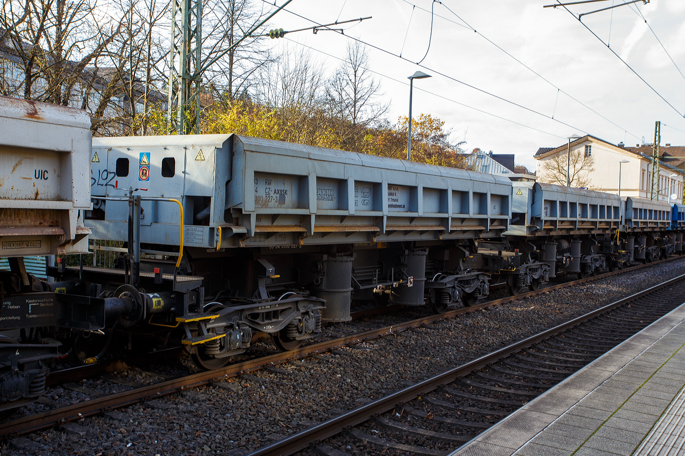 Ein fast neuer vierachsiger 88 m³ Drehgestell-Kesselwagen (Mineralöl-Kesselwagen 88 m³) 33 54 7830 200-1 CZ-RTIW, der Gattung Zacns, der slowakischen Wagonvermietungsfirma Railtrans International a.s. (Bratislava), am 22 November 2024 im Zugverband bei einer Zugdurchfahrt durch Kirchen/Sieg.