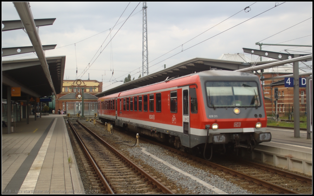 Alltag in Rostock Hauptbahnhof. 362 755-1 schiebt angekommene Regio-Züge in das angrenzende Bw oder holt sie von dort und stellt sie bereit. Am 03.10.2011 wird der RE5 aus Berlin nach seiner Ankunft ins Regio-Bw geschoben