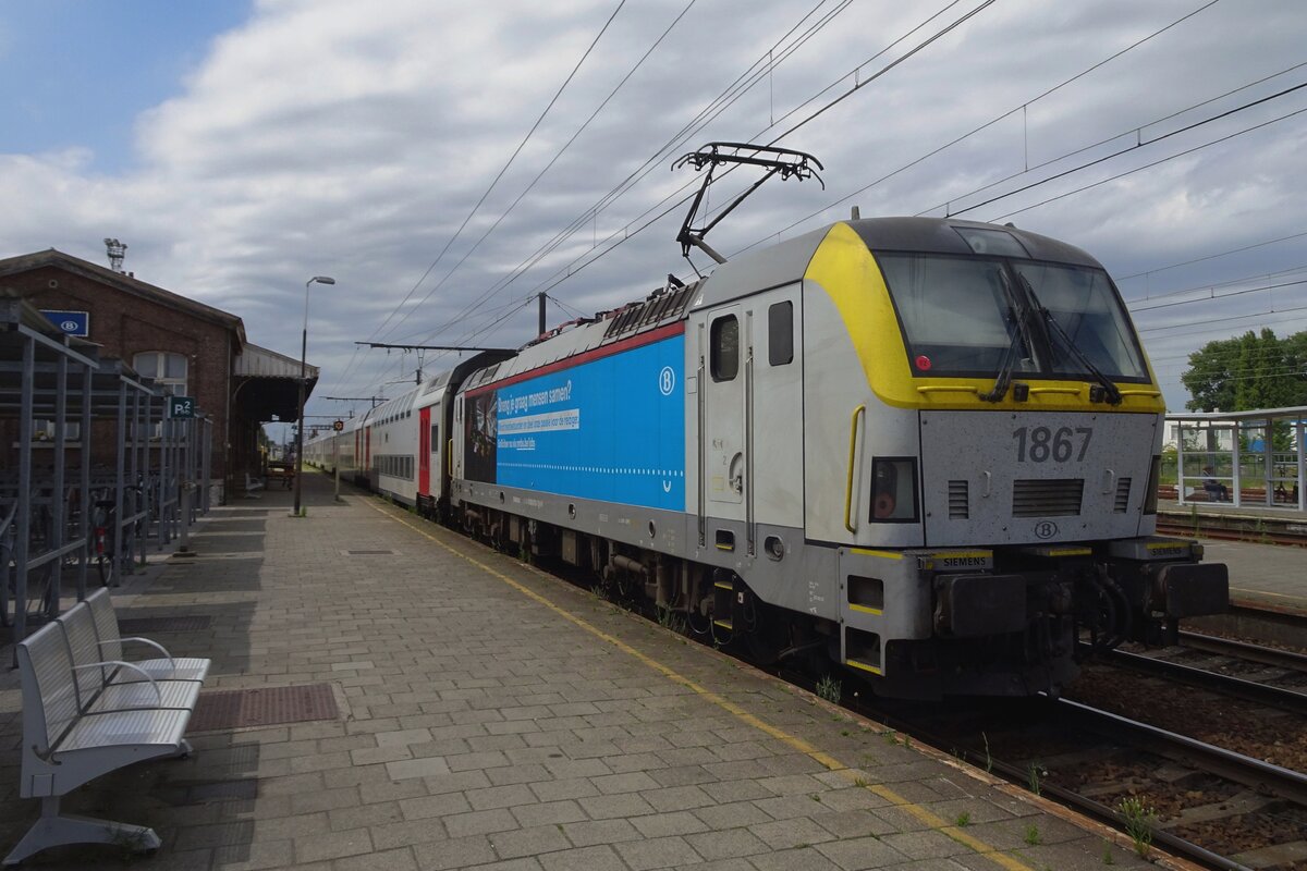 Am 14 Juli 2022 schiebt NMBS 1867 ein IC nach Mechelen aus Lier aus.