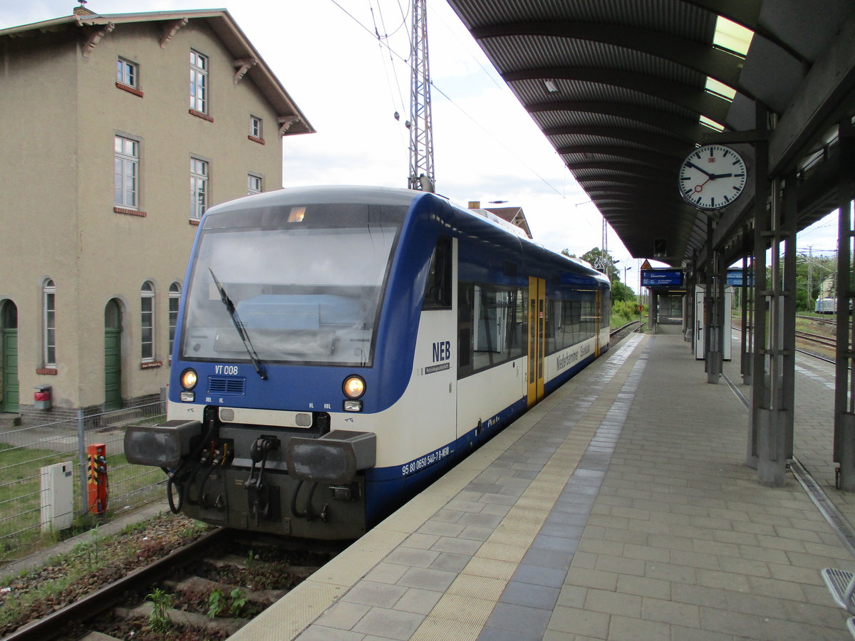 Die NEB fährt auch nach Schwedt(Oder).Hier traf ich,am 16.Mai 2020,den wartenen VT008 in Angermünde.