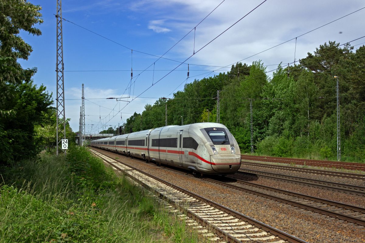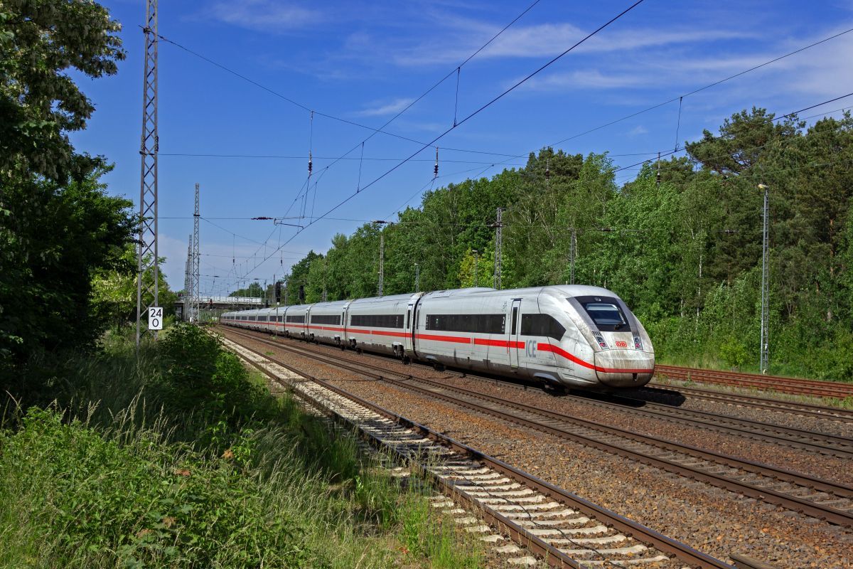 Der Triebzug 9490 ist am 21.05.25 nur noch wenige Minuten vom nächsten Zwischenhalt in Berlin-Südkreuz entfernt, als der Zug durch den Bahnhof Ludwigsfelde eilte. Leon Rosendahl