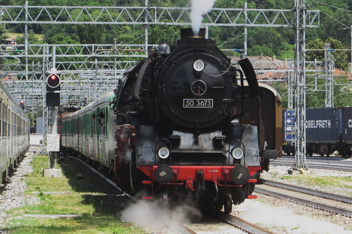Die 50 3673 ist seit 2010 im Privatbesitz, wird von Associazione Verbano Express, Luino geleased und schiebt am 29 Mai 2022 ein Dampfzug aus Luino aus.