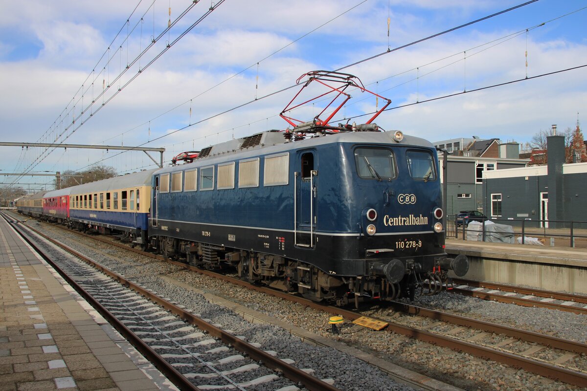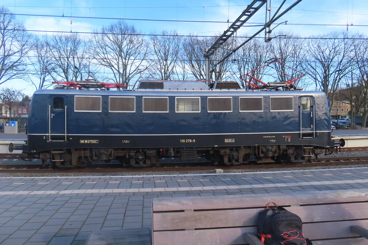 Am 13 Jänner 2000 zieht 110 257 ein Belgischen Internationalzug durch Köln-Deutz.