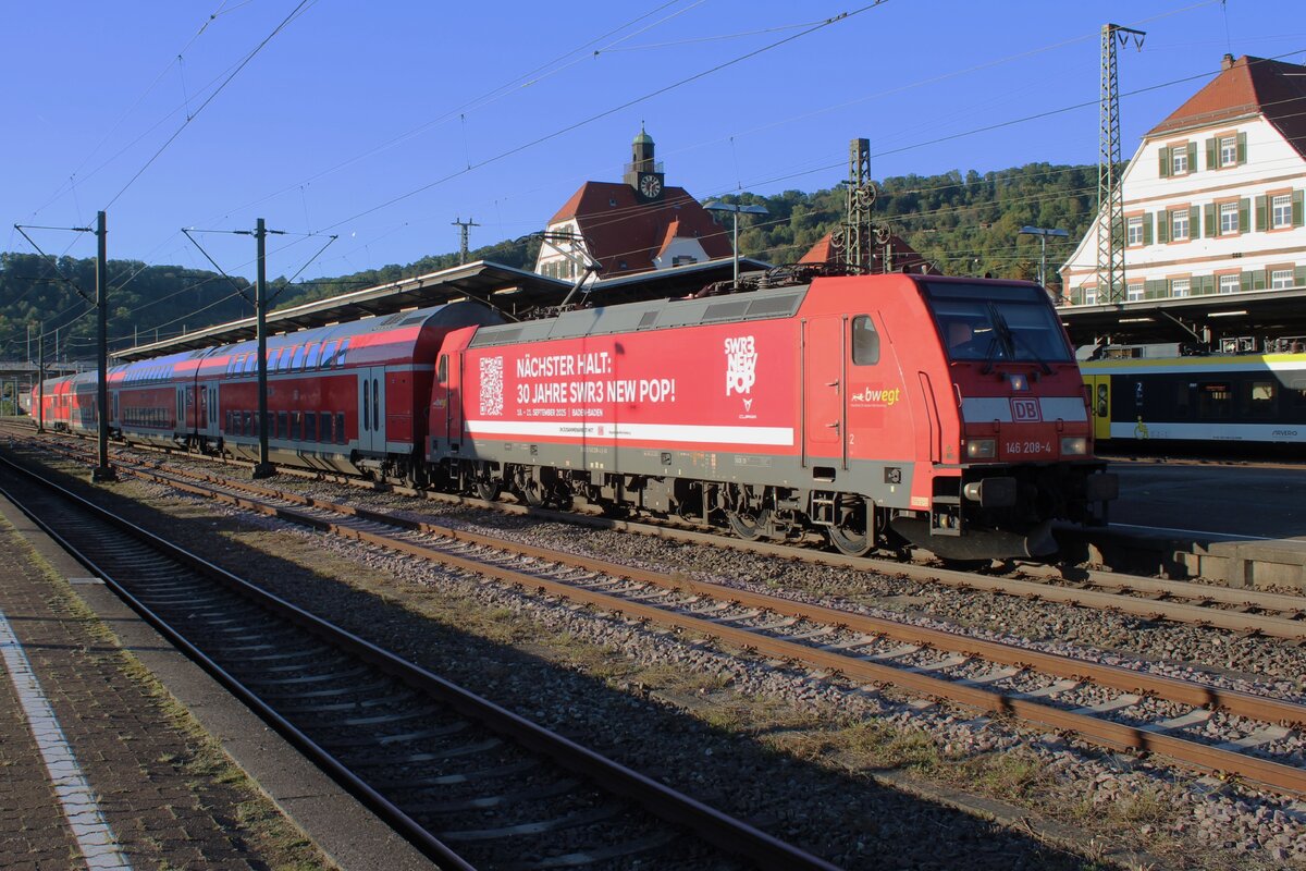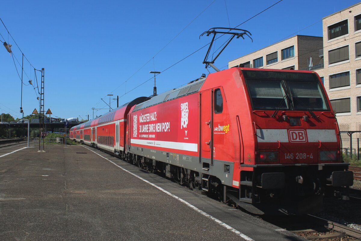 Die 146 519-4 (91 80 6146 519-4 D-BTH) der Landesnahverkehrsgesellschaft Niedersachsen mbH (LNVG) fährt am 14 Mai 2022, mit dem metronom ME RE3 nach Hamburg Hbf, in den Hauptbahnhof Hannover ein.