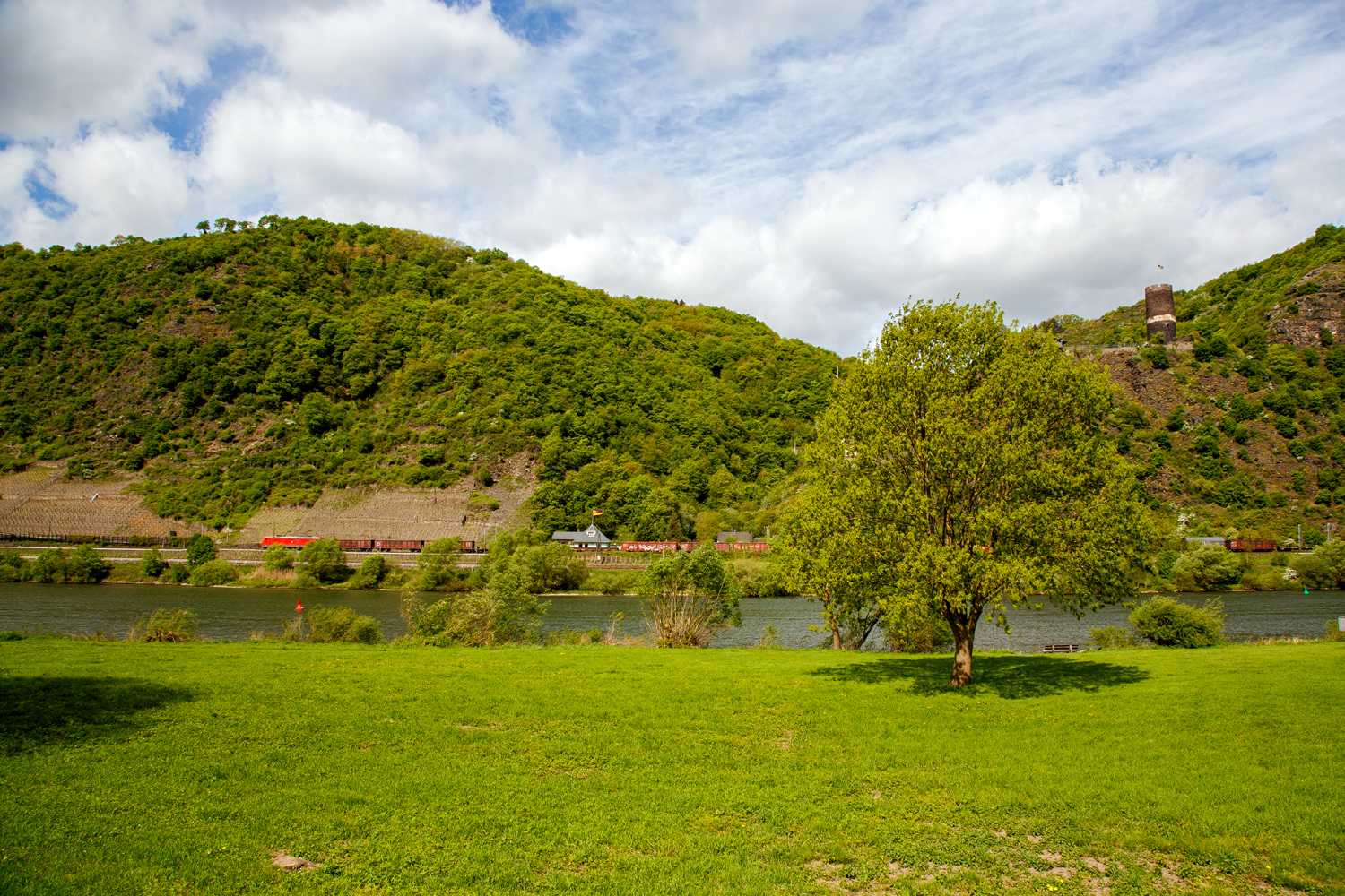 Die 185 255-7 (91 80 6185 255-7 D-DB) der DB Cargo AG fährt am 11 November 2025 mit einem gemischten Güterzug (vermutlich alles leere Wagen) durch Kirchen/Sieg in Richtung Köln.