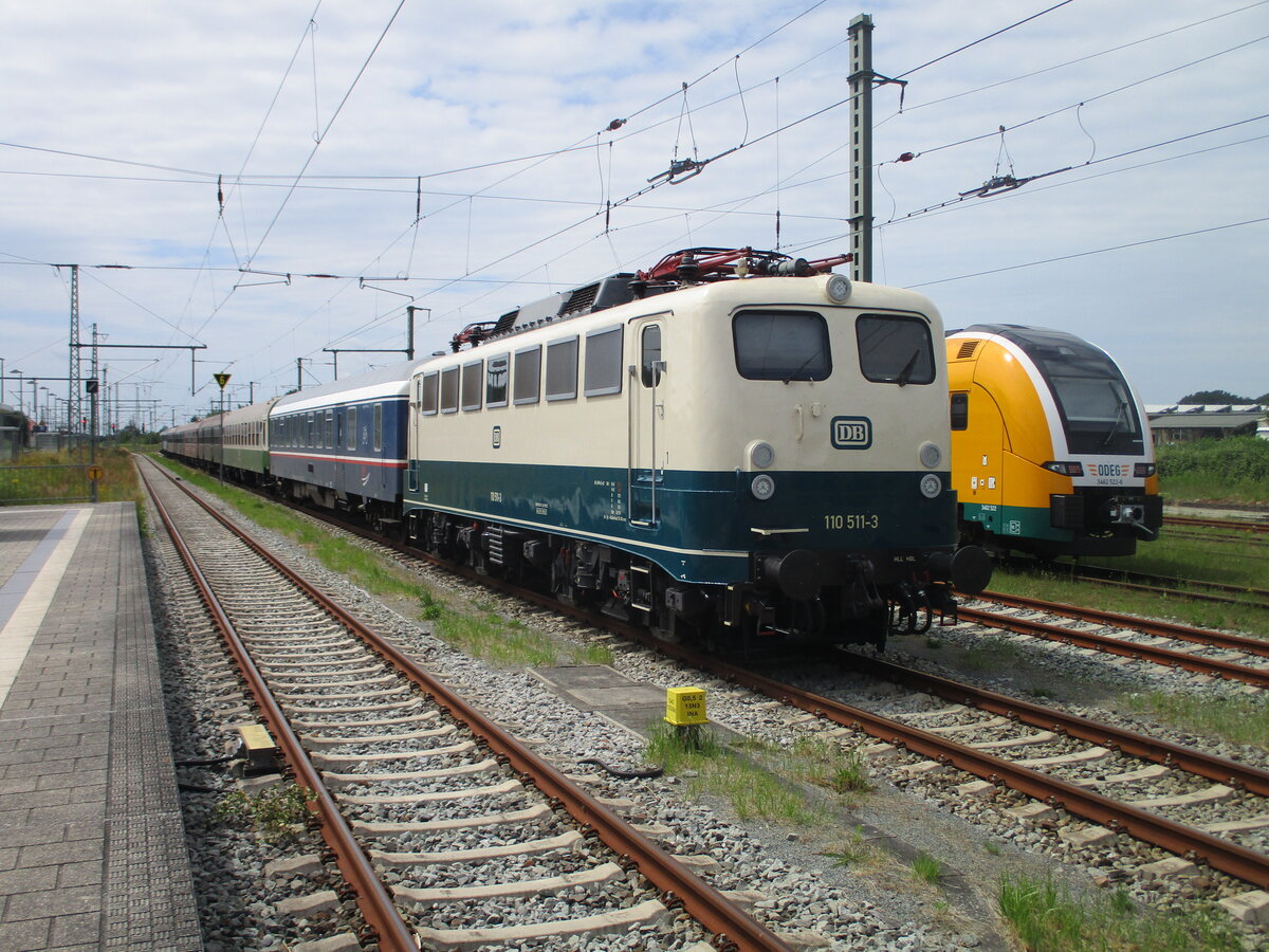 Drei Mal soll der Nachtzug von Zwickau nach Bergen/Rügen kommen.Am 28.Juni 2025 brachte die PRESS 110 511 den Sonderzug nach Rügen.