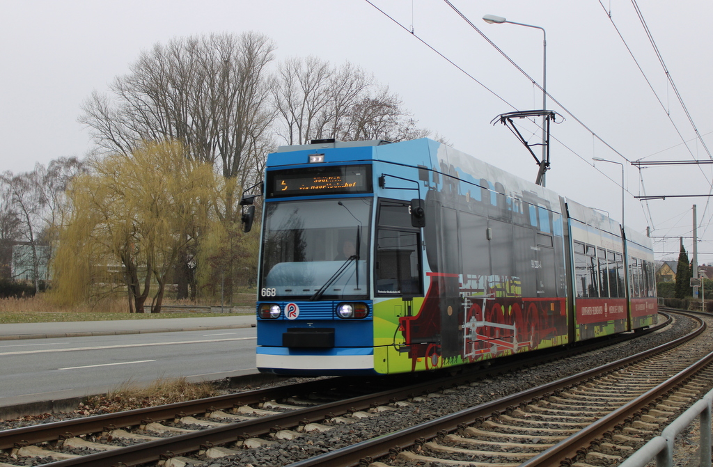 6N2 Wagen 605 stand am Abend des 03.11.2018 gegen 19:19 Uhr auf dem Gelände der Rostocker Straßenbahn AG abgestellt.