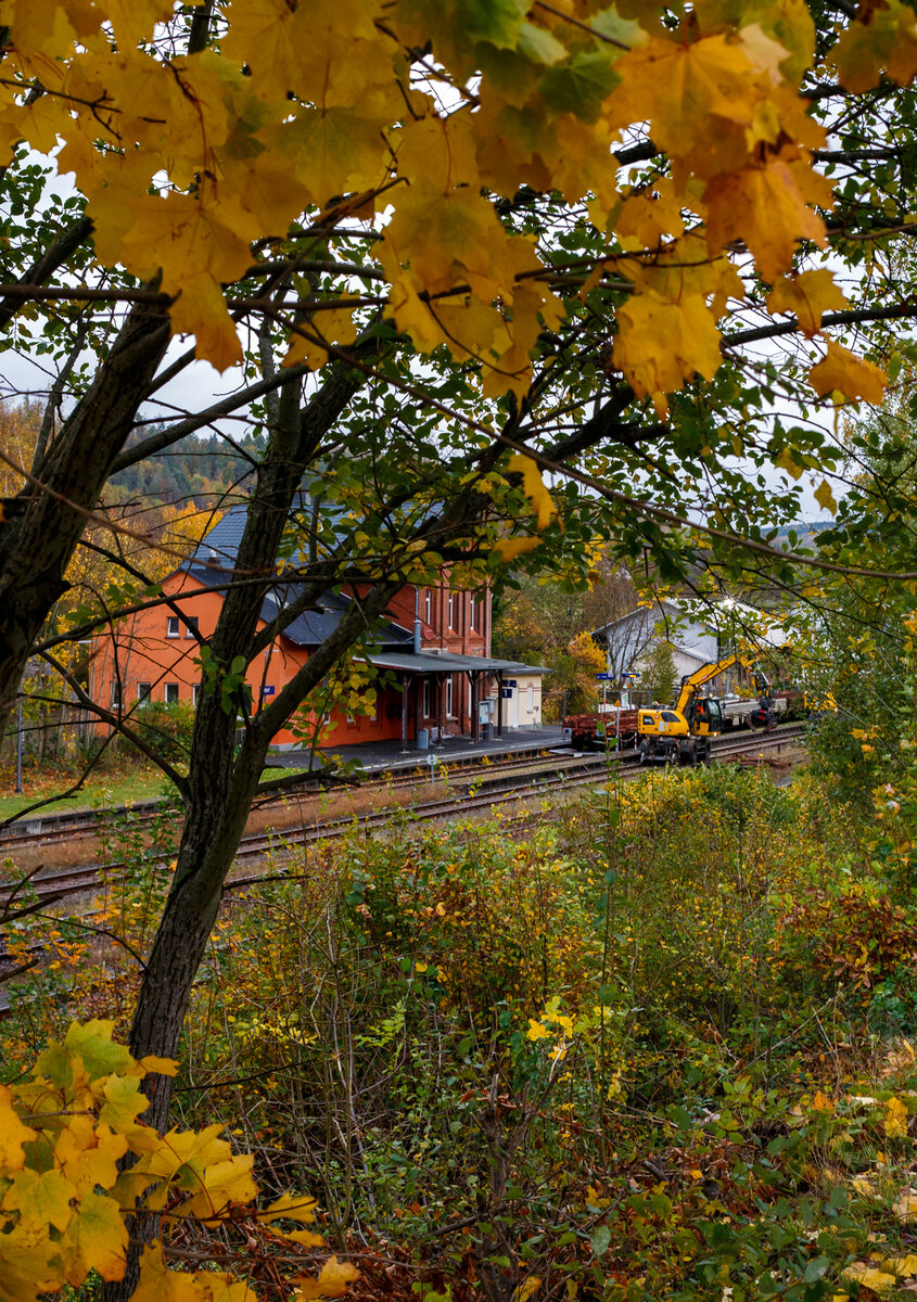 Baustelle Bahnhof Herdorf nun am Sonntagmorgen des 26 Oktober 2025, auch wenn es weithin kühl und windig ist, so regnet es (kurzzeitig) wenigstens mal nicht. Doch trotz der bescheidenen Wetterverhältnisse, sind die Arbeiten seit gestern Nachmittag sehr gut vorangegangen. Die neue Weiche 3 und das neue Gleis als Anschuss von Weiche 26 an Gleis 4 sind eingebaut. Nun muss noch Eingeschottert und später Gestopft werden.