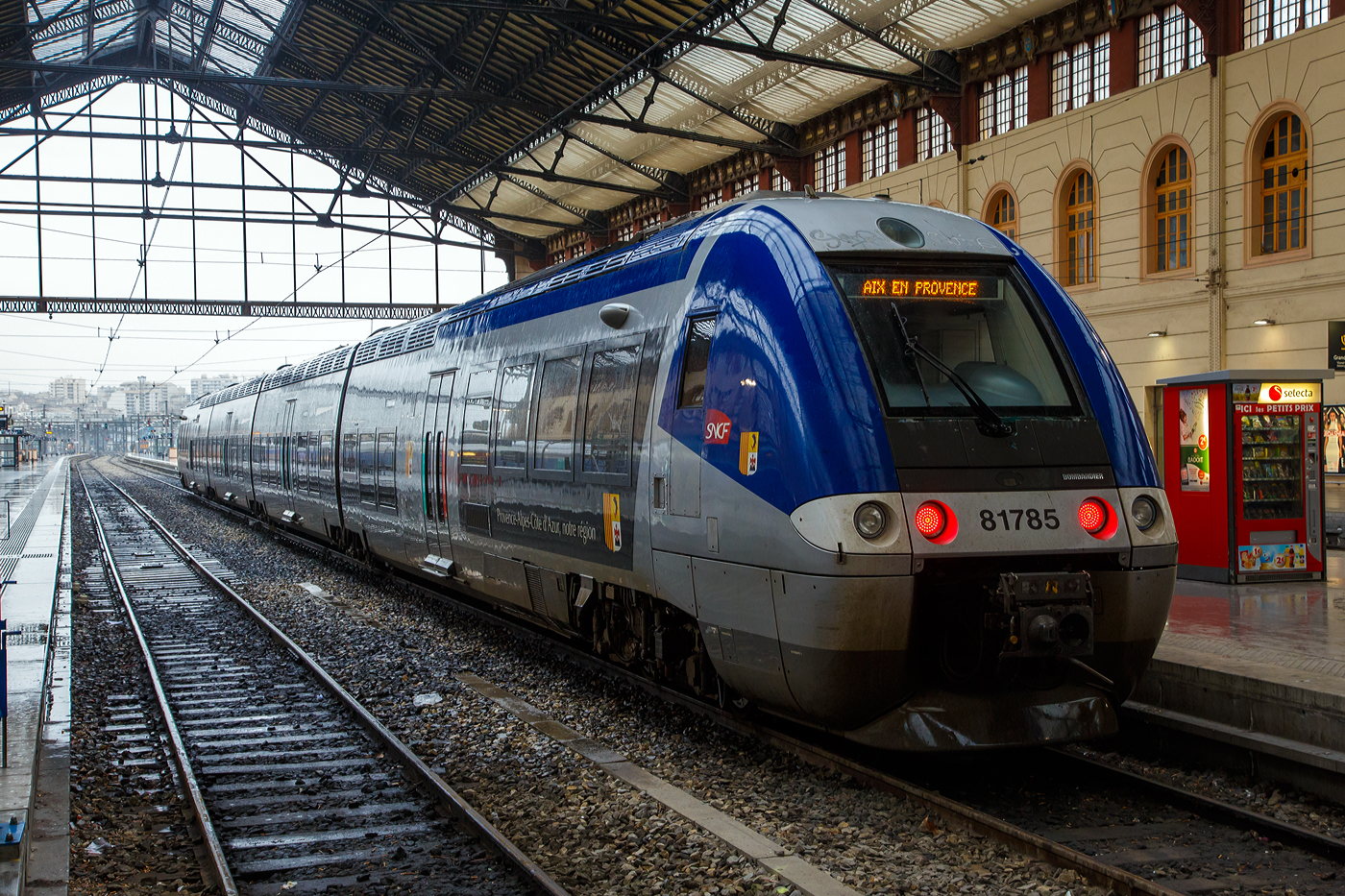 Zweiwege Selbstfahrer Triebzüge 82581 und 82703 verlassen den Bahnhof von Chambery-Challes-les-Eaux in Richtung Lion Part Dieu über Pin / Bourgoin Jallieu. 22.09.2022