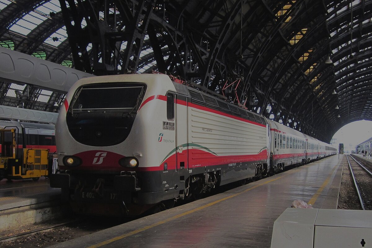 Frecchiabianca farbener E402 103 hat sicxh am 1.Juli 2013 in Milano Centrale von dewren IC losgekupelt.
