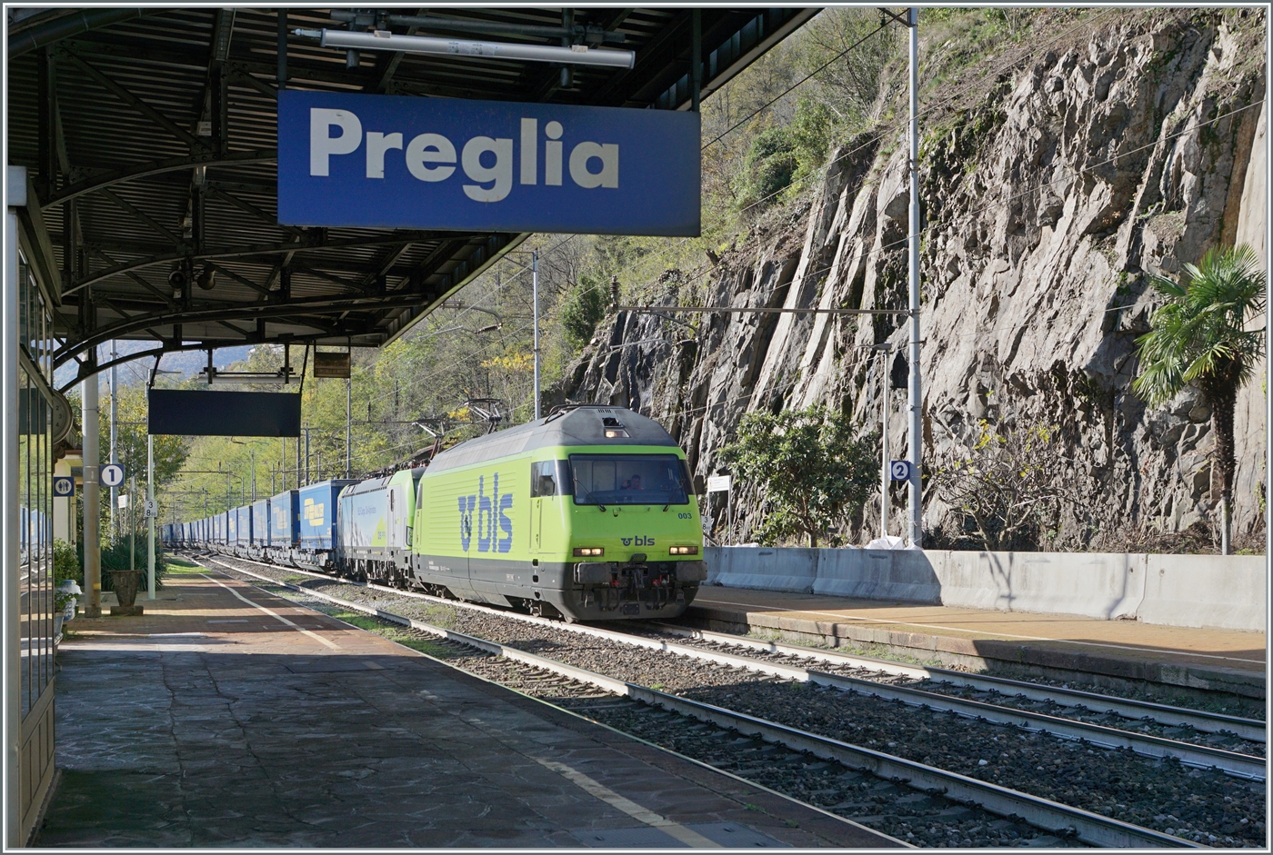 Unser IR von Doomodossola nach Brig überholt in Varzo eine von BLS Re 485 geführte RoLa.