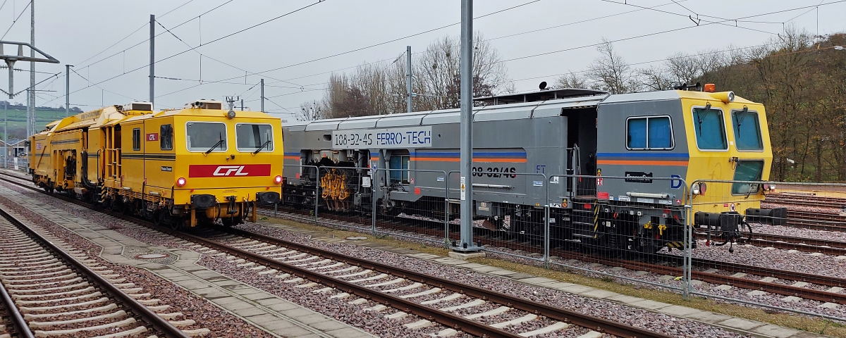 Die Schienenschleifeinheit RR 32 M-3 der SPENO INT. SA (eingestellt in Deutschland und Spanien) ist am 14.05.2016 beim Bahnhof Ettelbrück (luxemburgisch Ettelbréck, französisch Ettelbruck) abgestellt.