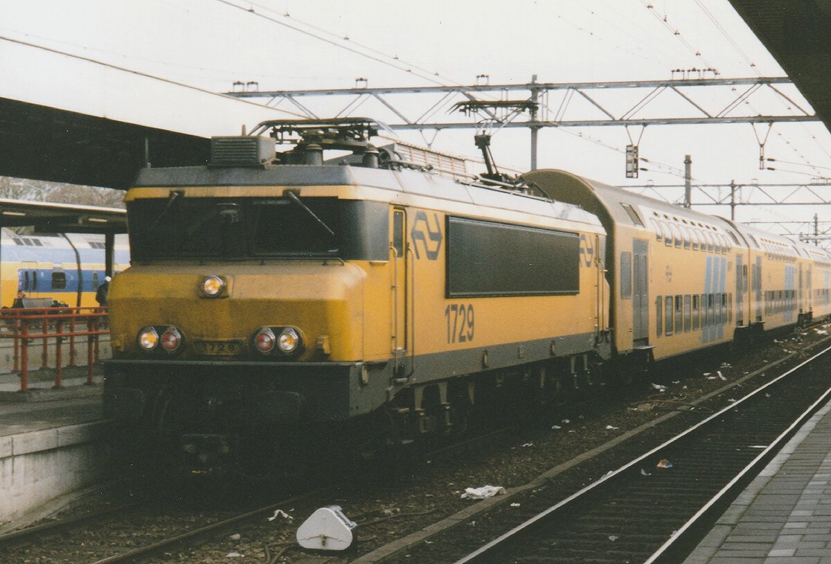 Die NS 1761 (91 84 1560761-6 NL-NS) mit einem EuroCity (DB IC-Wagen) am 31.03.2018 im Bahnhof Amsterdam Centraal.