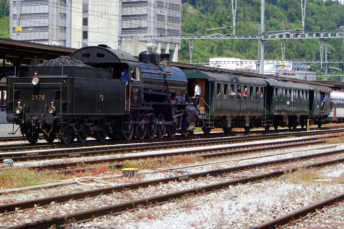 "Schweiz aktuell am Gotthard" - Dampfzug mit der C 5/6 2978 beim Passieren vom Unterwerk Giornico am 28. Juli 2016. Hinter der Lok eingereiht war der Z4 961, der am Morgen mit der grünen Re 4/4 11161 bis Göschenen Überführt wurde.
