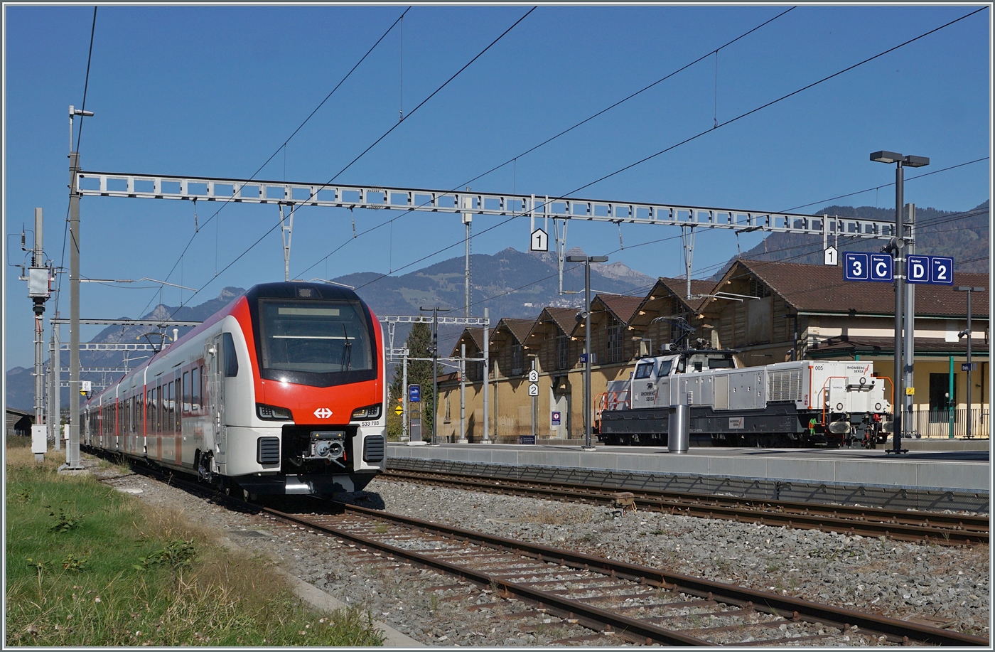 In Bex stehen zwei neue EVO RABe 531/533: Vorne der TMR Region Alpes RABe 533 703 und weniger gut zu sehen der RABe SBB RABe 531 002.