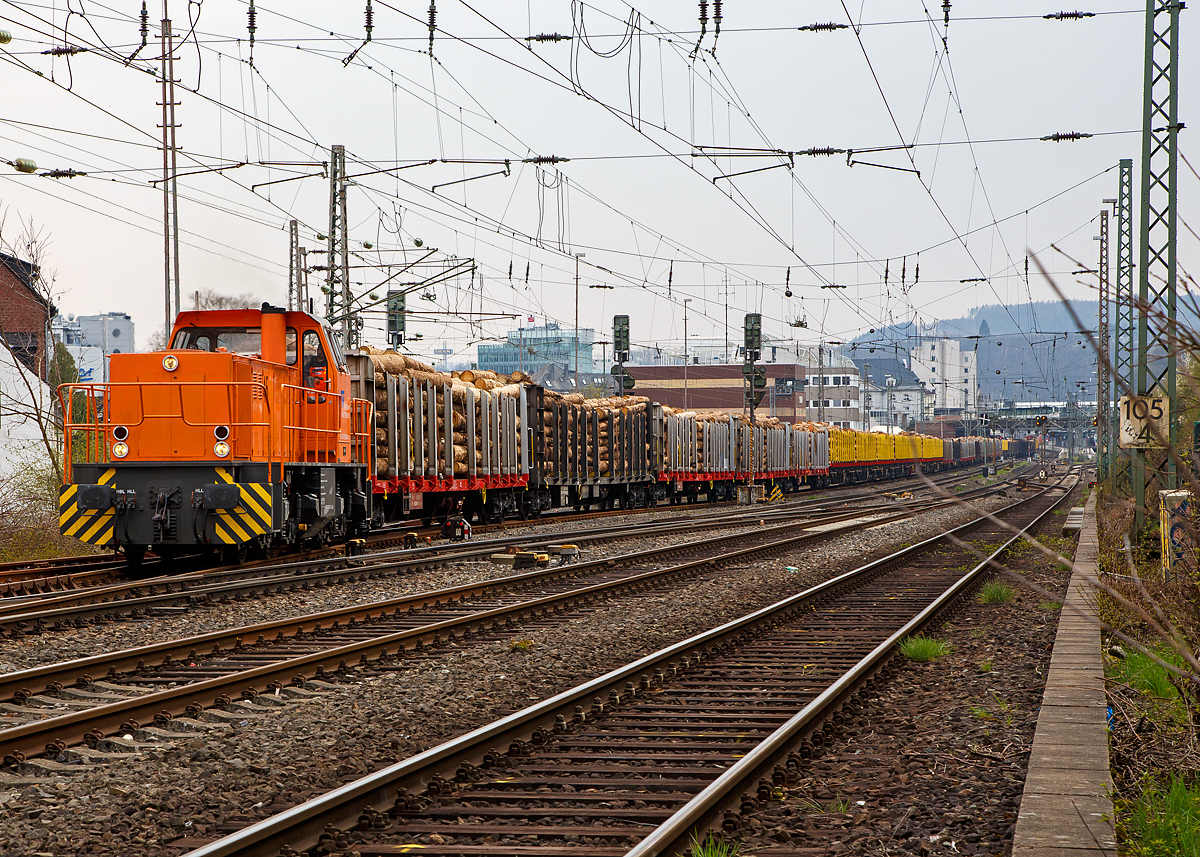 Die SCHEUCHZER Diesellok Am 847 101-3 (CH-SCHEU 92 85 88 47 101-3) "Le Bison" zeigt sich Vallorbe im besten Licht. Die 1917 gegründet Gleisbaufirma Scheuchzer aus Bussigny übernahm diese Diesellok 2004 als Neubaufahrzeug von der CFD.