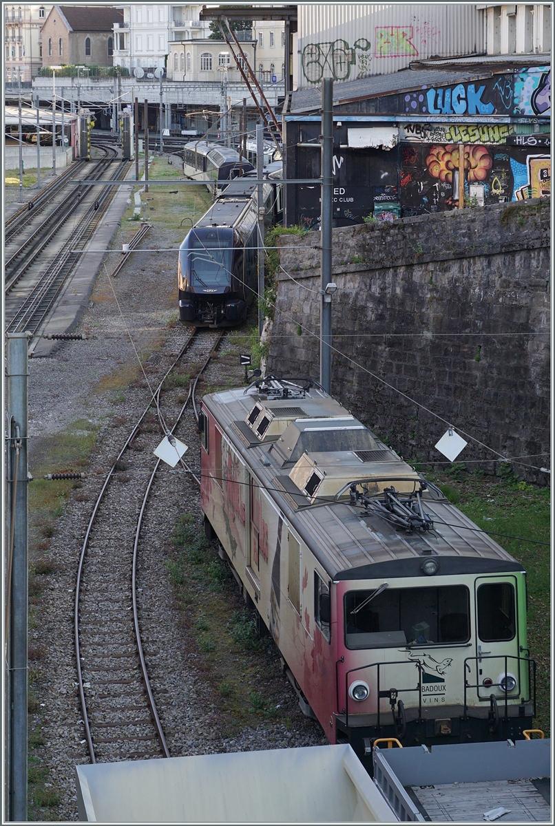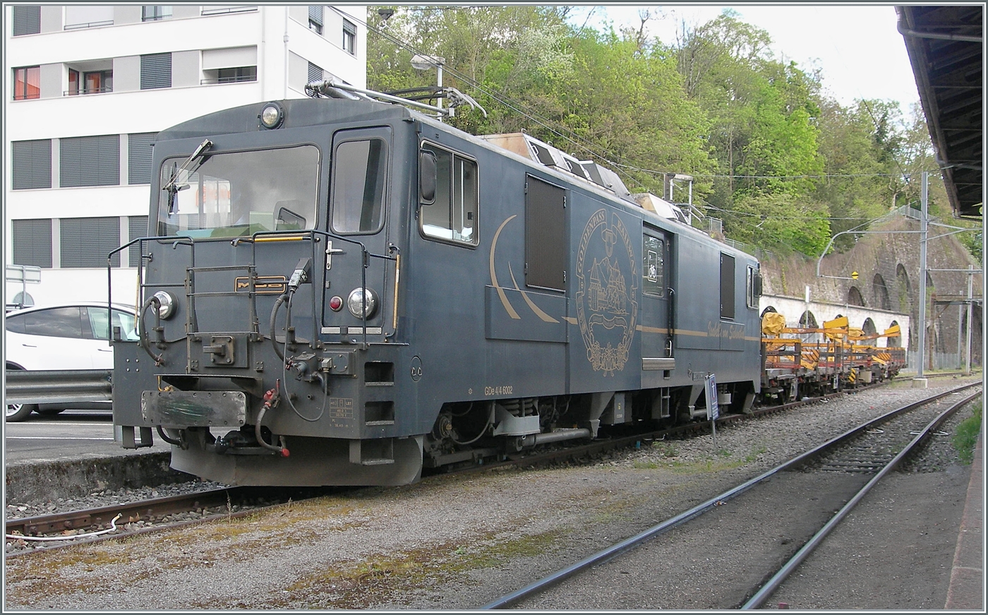 Einen solchen "Dienst"-Zug hatte die MOB GDe 4/4 6006 nach Vevey gebracht, wo sie nun aufgebügelt auf eine neuen Einsatz bzw. eine Rangierfahrt wartet. Der "Dienstzug" bestand aus MOB Panoramawagen die in Vevey verladen und nach Frankreich gebracht werden.