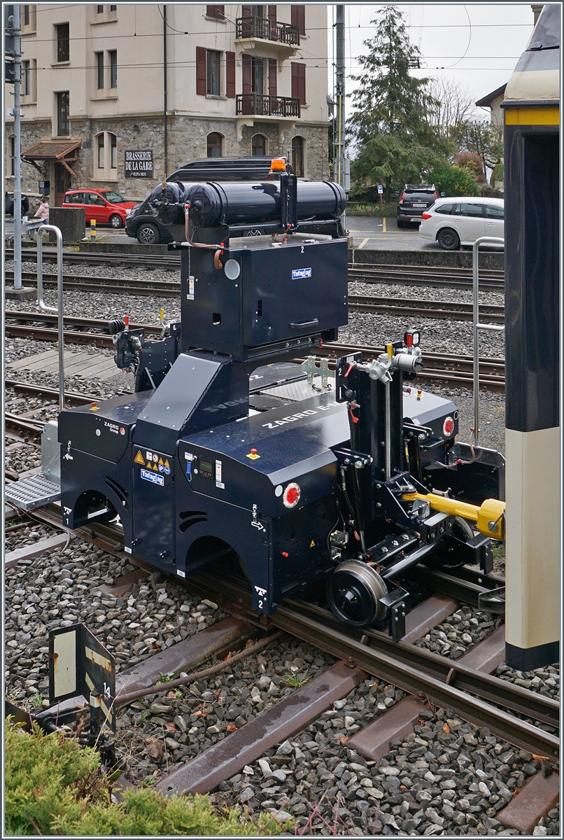 SPURWECHSEL bei der MOB - und dies ganz anders: der neue ZAGRO E-MAXI kann ohne weiteres von einem Gleis zum anderen fahren, ohne auf allfällige Weichen Rücksicht zu nehmen: er verlässt einfach das Gleis und fährt über das Gelände zum gewünschten Gleis - Spurwechsel der anderen Art... Chernex, den 20. Feb. 2026