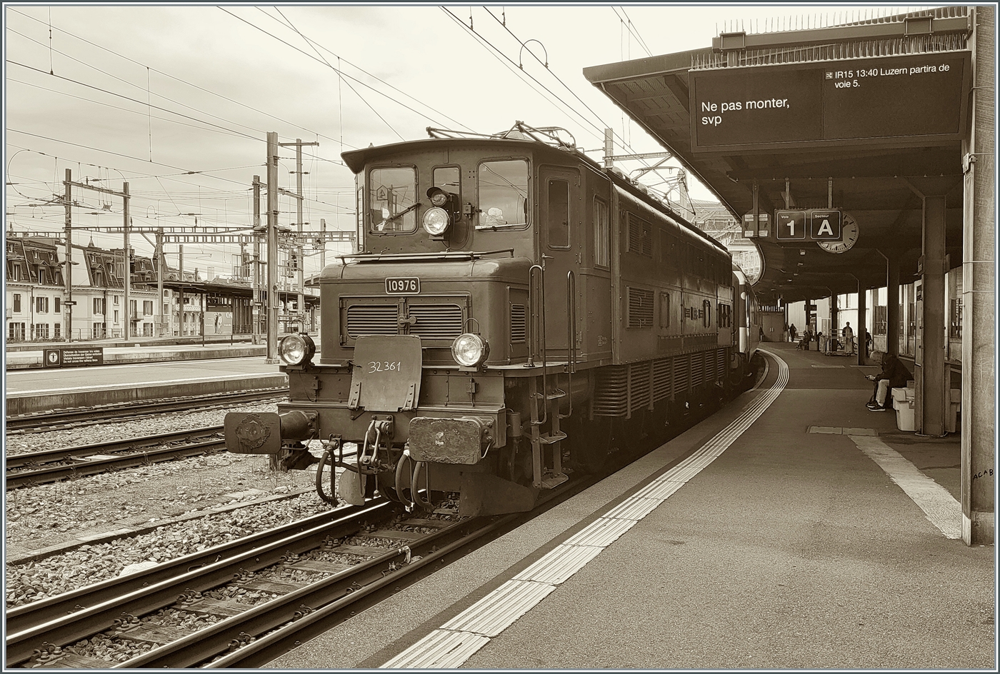 In Lausanne auf Gleis 1 wartet die SBB Historique Ae 4/7 10976 mit ihrem SBB Schulzug (hier nicht zu sehen) auf die Weiterfahrt.