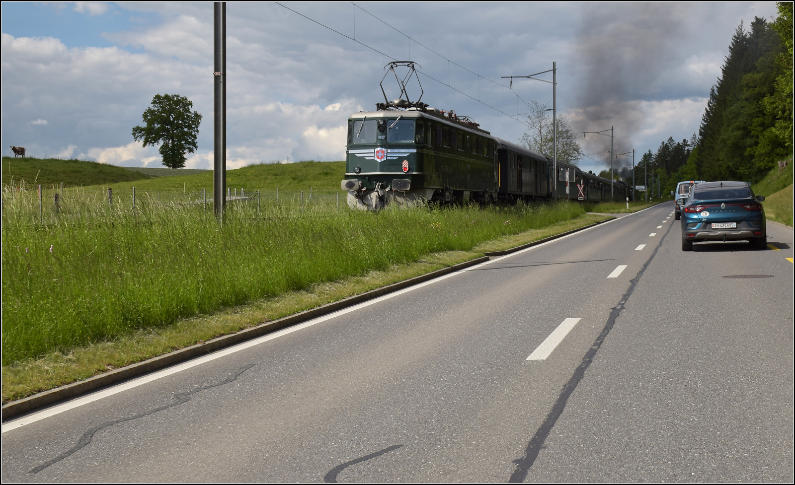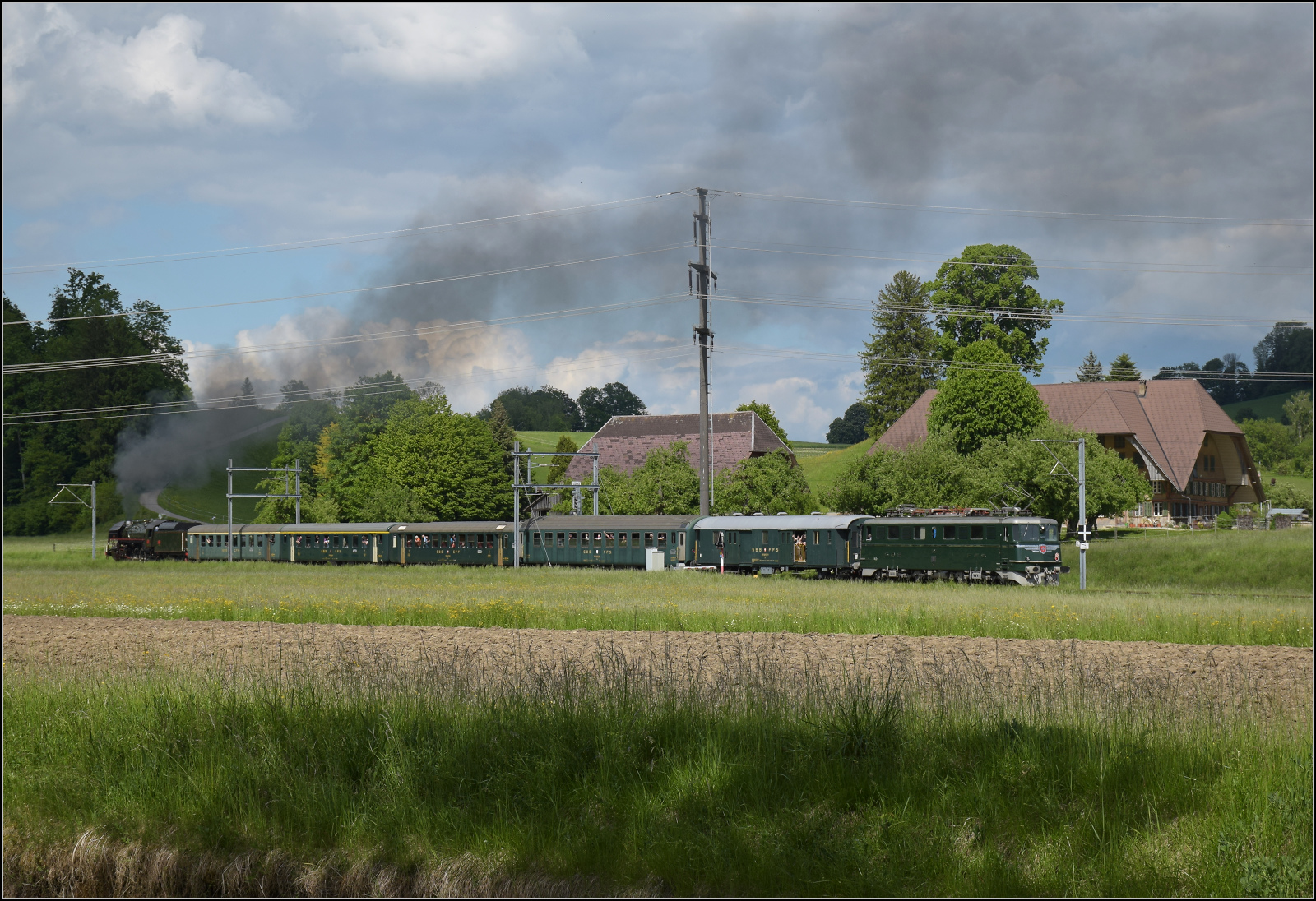 Grosser Bahnhof Wohlen: Die Ankunft des Dampfzuges mit drei Dampflokomotiven vermochte eine sehr grosse interessierte Zuschauermenge zu mobilisieren. Die Ae 6/6 11407 "AARGAU" brachte am Abend des 7.3.2015 die Reisenden aus Deutschland in ihren schönen historischen Wagen von Wohlen nach Konstanz.