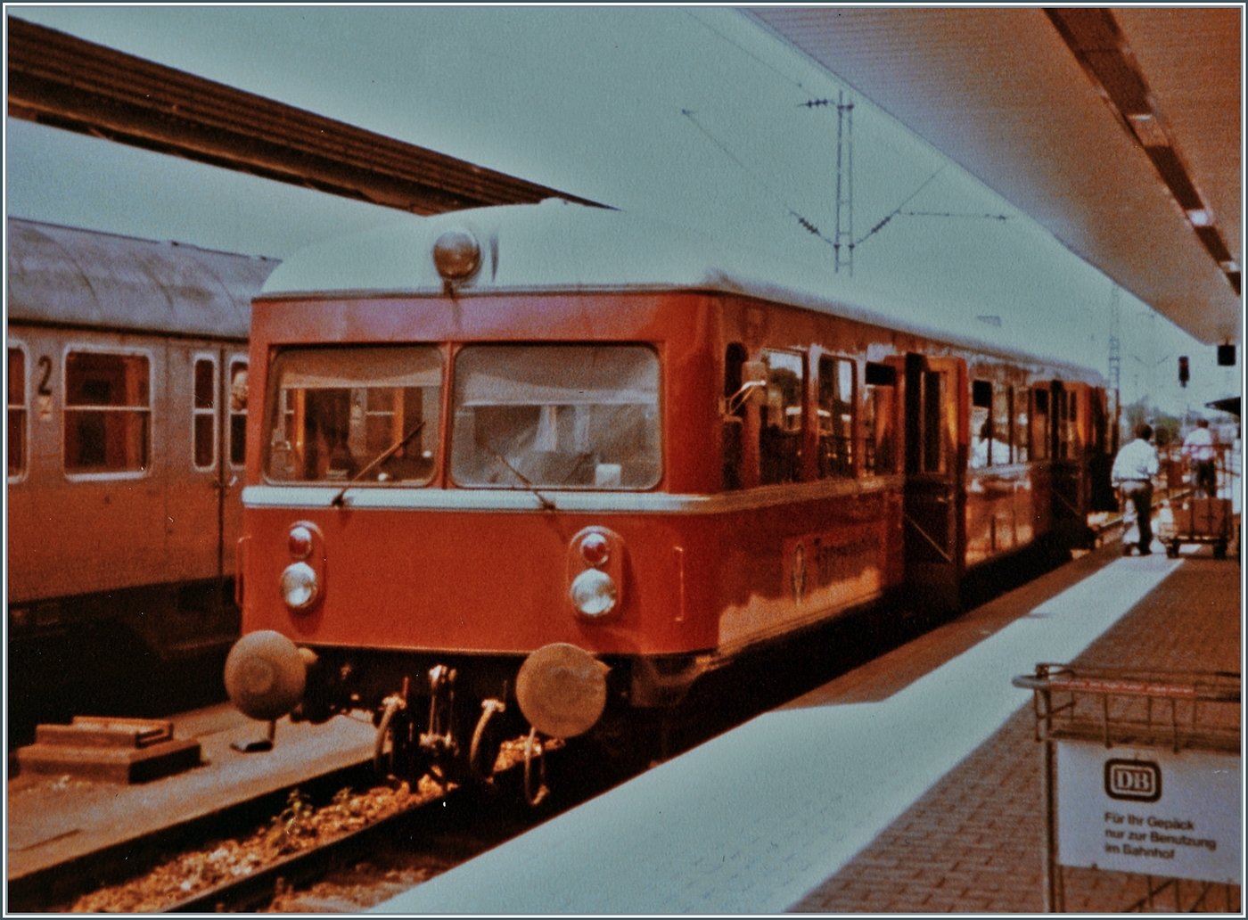 Aus Anlass der Rückkehr des VT 109 das bereist gezeigt Bild nun in "Farbe": Der VT 109 wartet in Basel Bad. Bf. auf Fahrgäste in Richtung Kandern. Analog Bild vom 04. Juli 1981