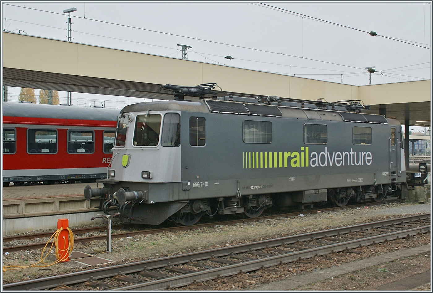 Die SBB Re 421 383 wartet in Basel Bad Bf auf einen nächsten Einsatz. Die Lok war von Mitte 2011 bis Mitte 2012 an RailAdenture vermiete. Ich fand dieses Bild in Magazin LOKI und wusste gar nicht, dass ich dieses Bild gemacht hatte... 6. November 2011