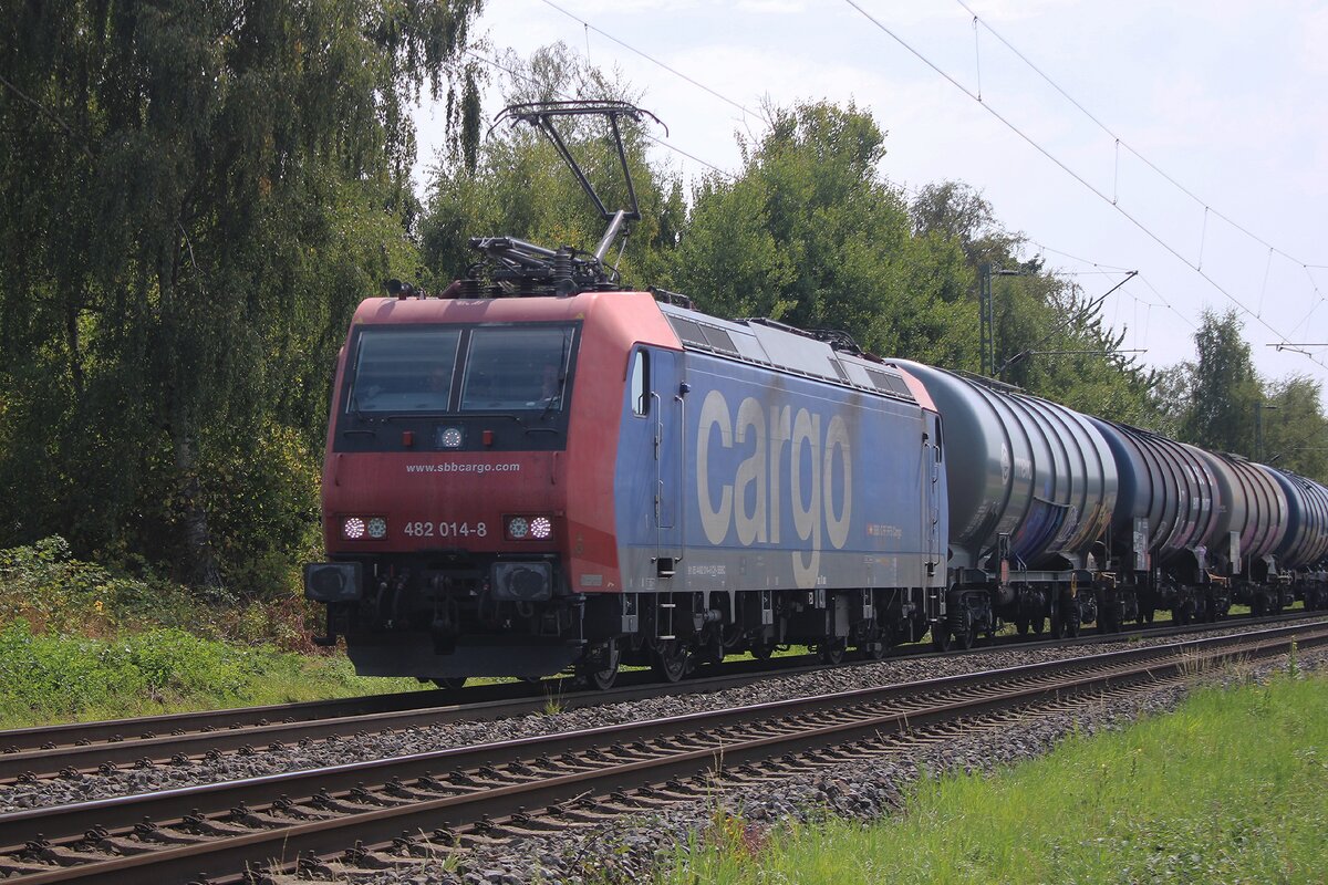 Die SBB Cargo Re 482 003-1 (91 85 4482 003-1 CH-SBBC) fährt am 05.02.2016 mit einem Containerzug durch Wissen an der Sieg in Richtung Köln.