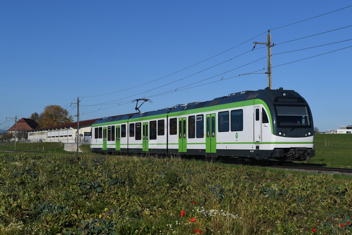 Es geht auch ohne Fotowolke: Von einem schattigen Plätzchen im Schutze eines Baumes konnte ich im "Gros-de-Vaud", der Kornkammer des Kantons, den LEB Be 4/4 64, unterwegs als Regionalzug 131 von Lausanne Flon nach Bercher kurz nach Fey fotografieren.
