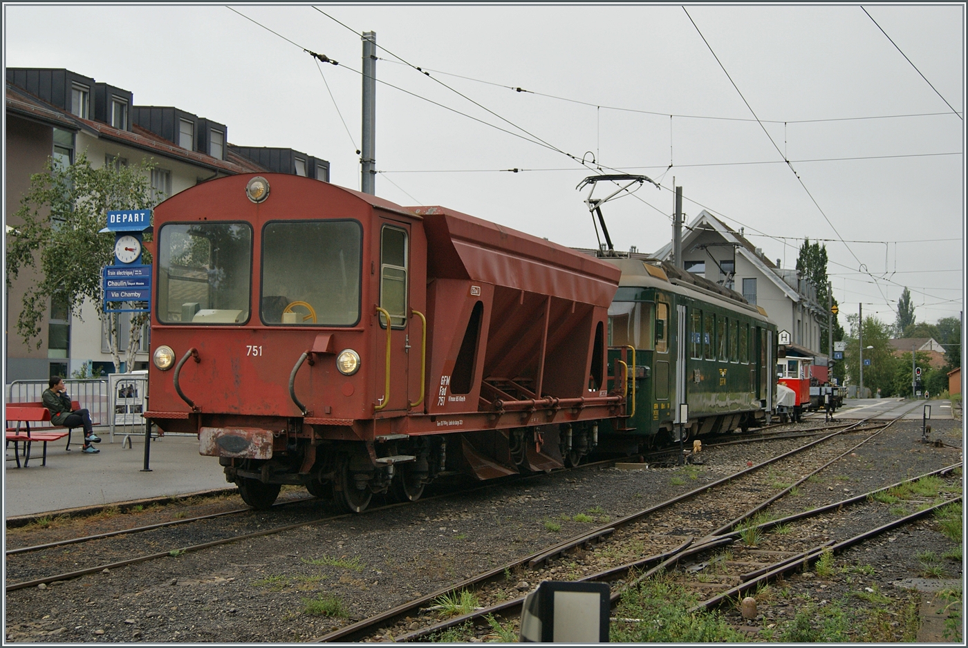 Das Bild zeigt die kleine Dm 2/2 N° 3 des Réseau Breton bei der Ausfahrt in Blonay. Der kleine Le Biniou brachte viel Ambiente in dieses gelungenen Wochenende. Und obwohl die Fahrten Blonay-Chantemerle und zurück mit dem Hinweis "sehr geringe Platzanzahl" versehen waren, fanden immer alle einen Platz.