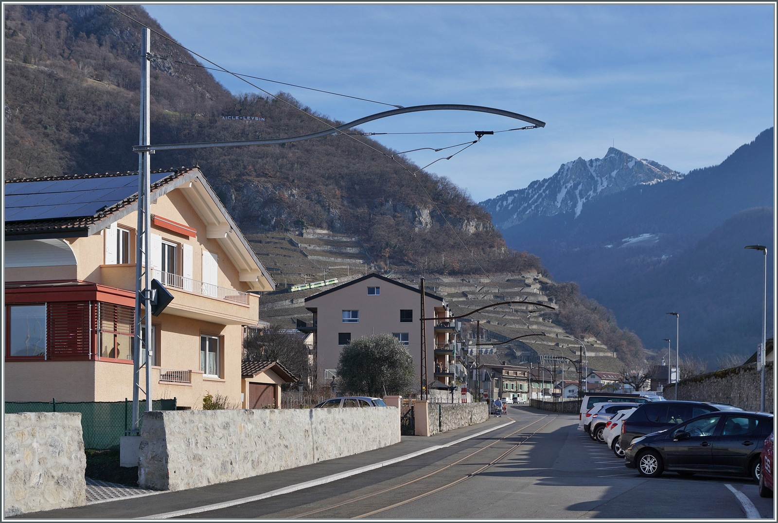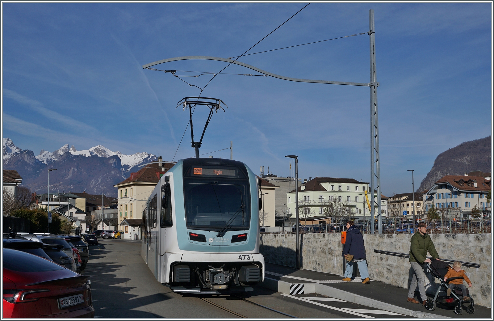 Der ASD TPC BDe 4/4 403 "Ollon" und der Bt 431 (ex BLT) warten in Les Diablerets auf die Abfahrt (12:36) nach Aigle.