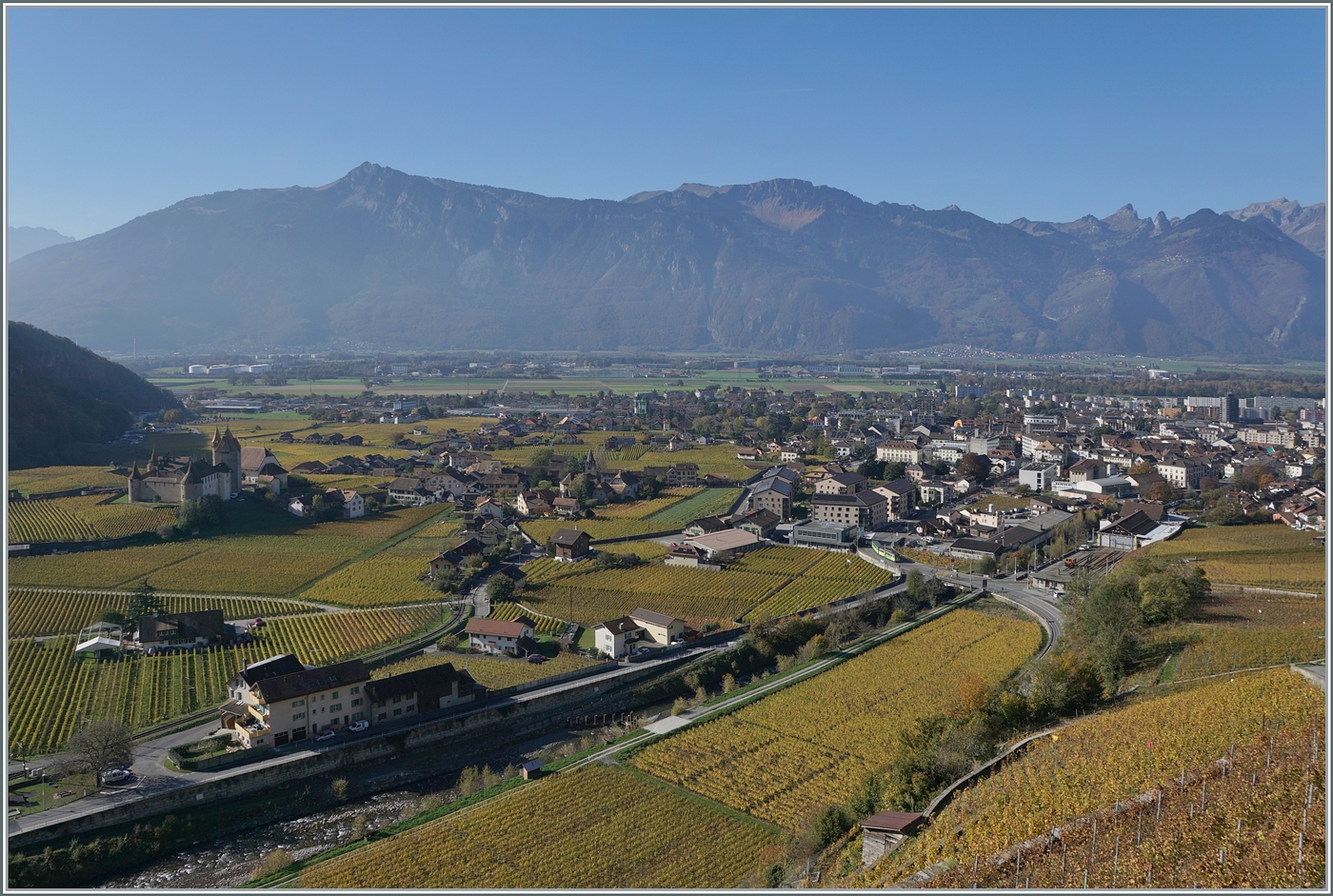 Zwischen Aigle Dépôt A-L und Fontanney ist ein A-L Regionalzug auf dem Weg nach Leysin.