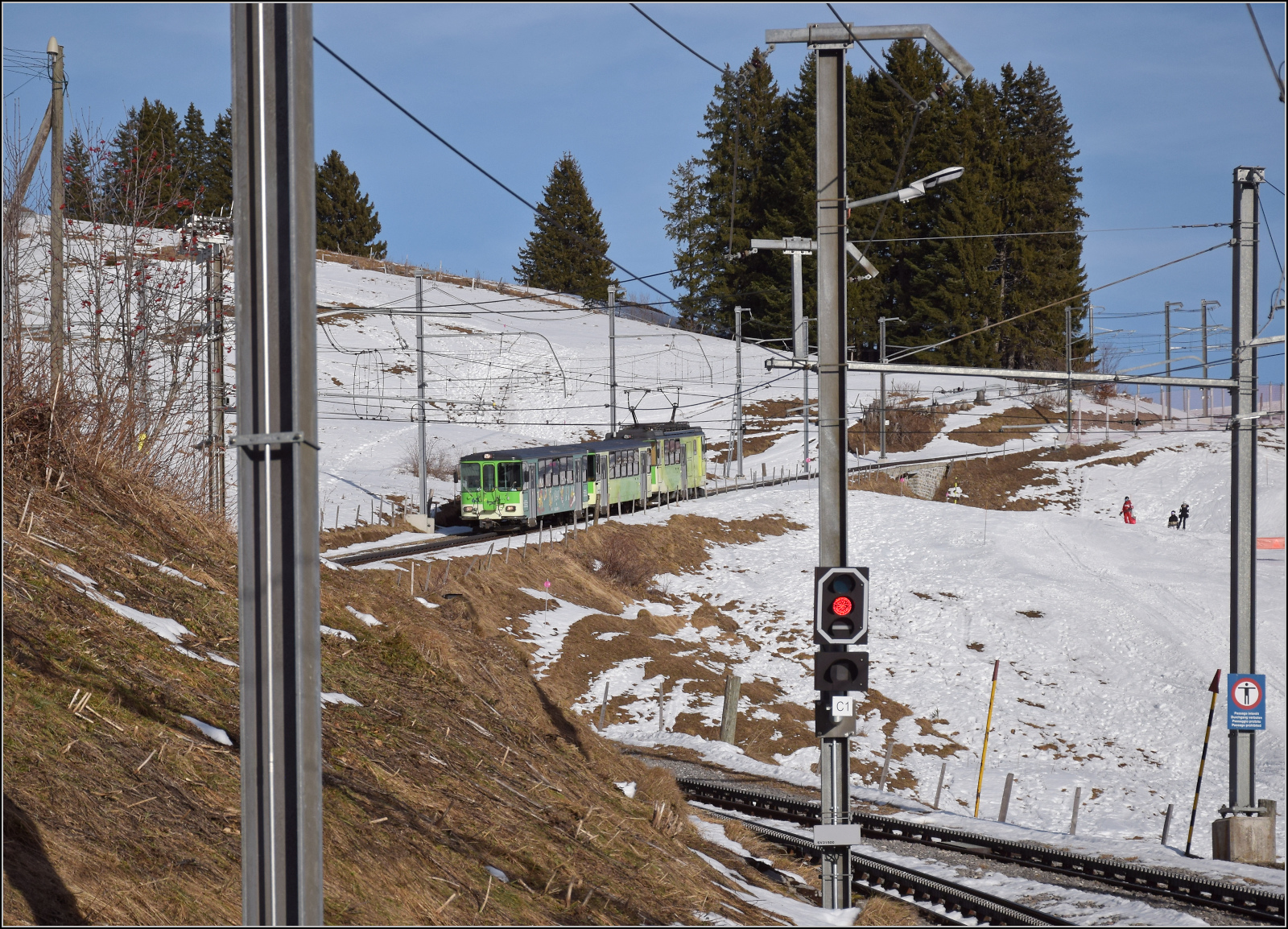 Der TPC BVB BDeh 2/4 25 wartet in Bouquetins auf den schon zu sehenden Gegenzug.