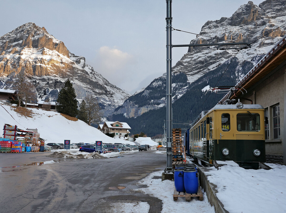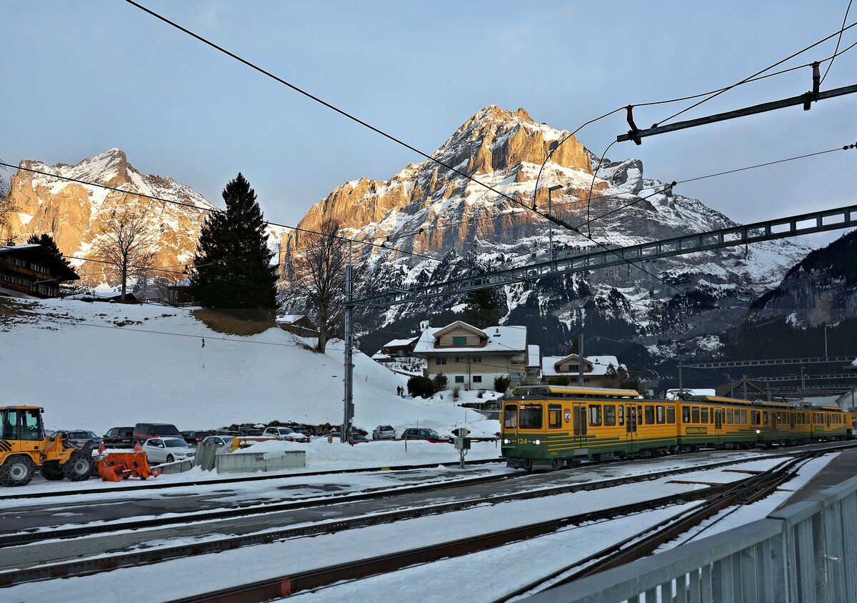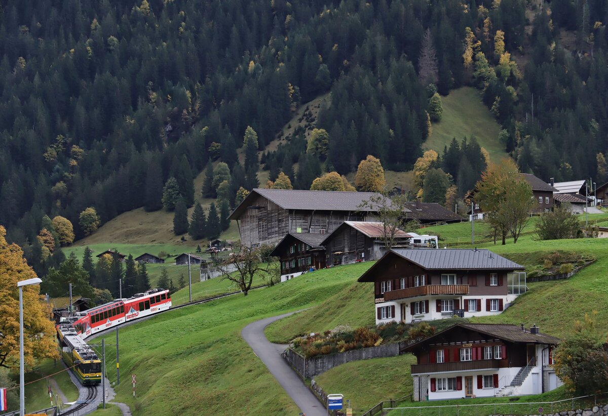 Der BOB Zug 232 von Grindelwald erreicht in Kürze Zweilütschinen. Dort wird er mit dem Zug aus Lauterbrunnen vereinigt und wird dann nach Interlaken Ost weiterfahren.