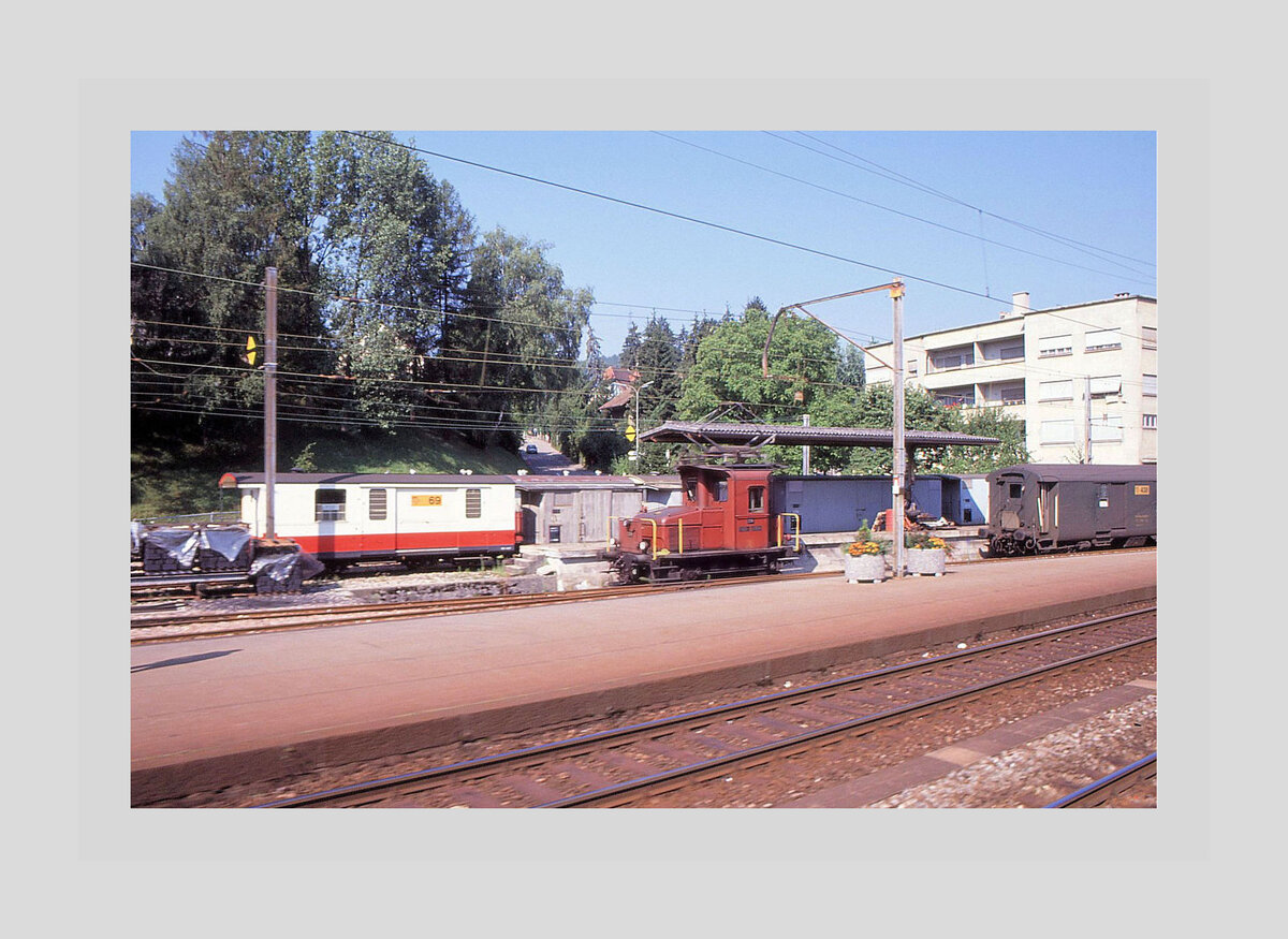 Die Waldenburger Bahn G 3/3 N° 5 "G. Thommen" raucht in Waldenburg.
