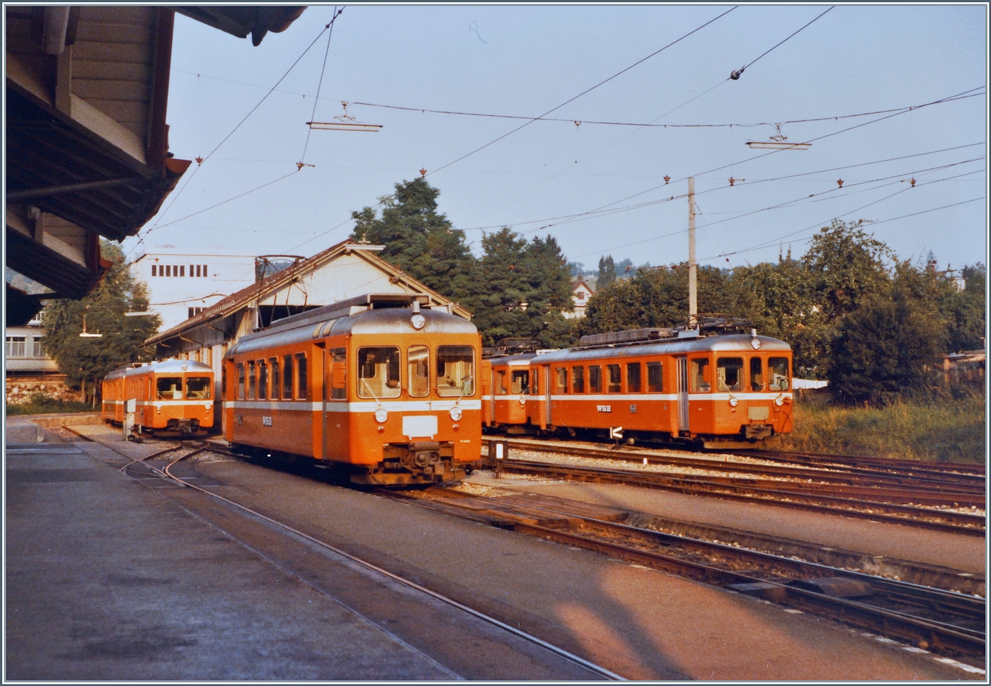 Die WSB De 4/4 mit einem Aluminium Massel Zug nach Menziken bei der Ankunft in Gränichen.