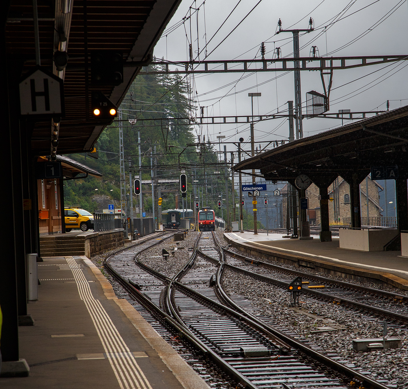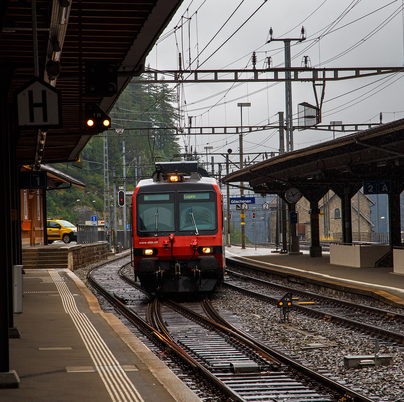 Ein SBB RABe 501 "Giruno verschwindet in Göschenen im 15 Kilometer langen Gotthardtunnel. Guten ein Jahr lang kommen die Reisenden via Gotthard in den Genuss der prächtigen Landschaft entlang der Gotthard Strecke, ab dem 2. September 2024 wird die Fahrt dann wieder durch en Gotthard Basis Tunnel (GBT) gehen.